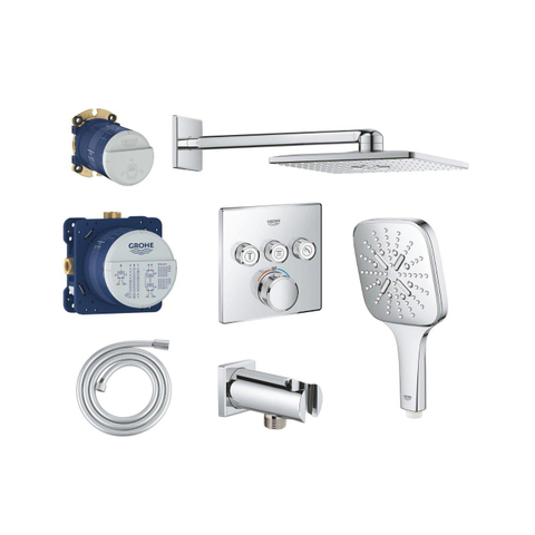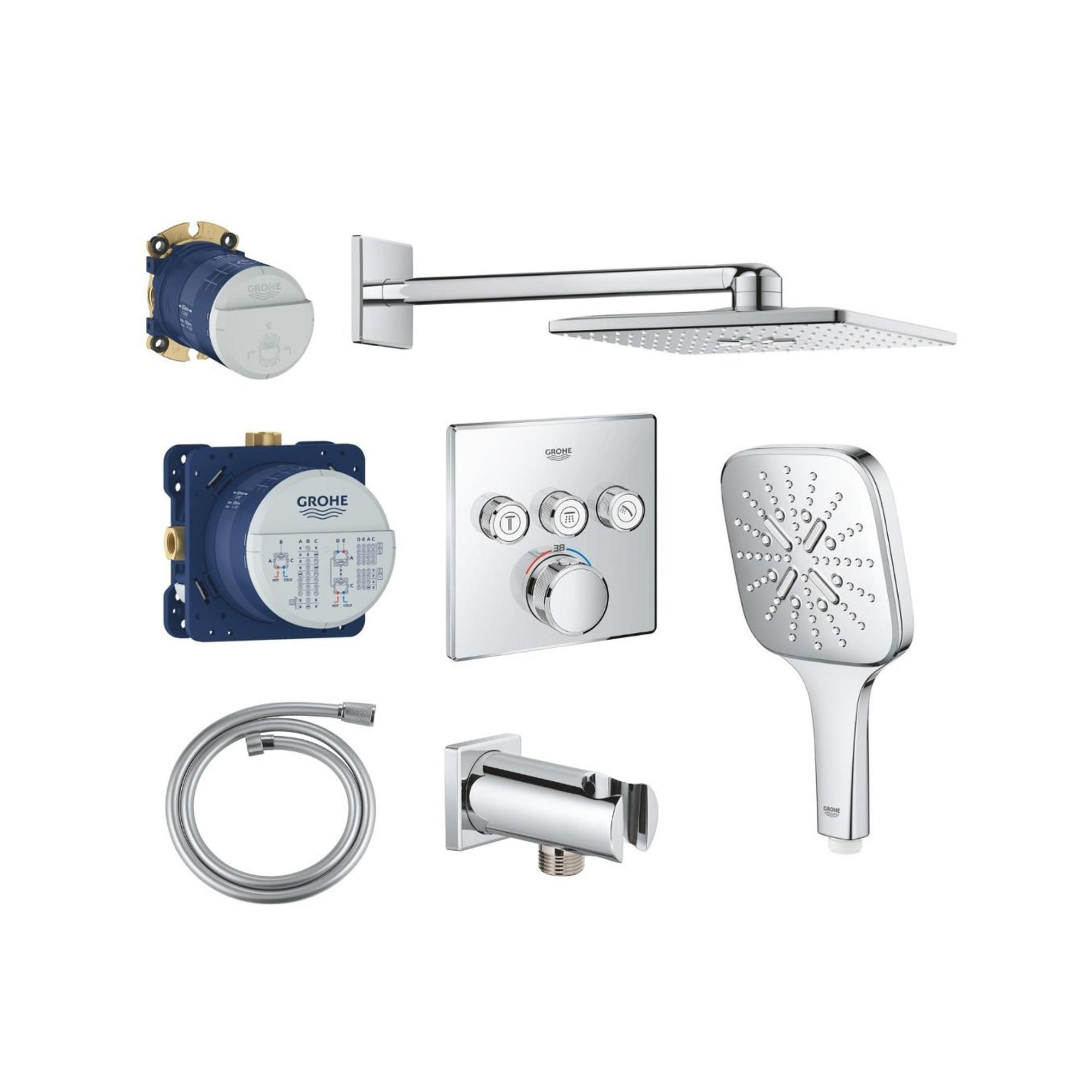 Grohe Grohtherm regendoucheset inbouw - hoofddouche vierkant - handdouche vierkant - chroom