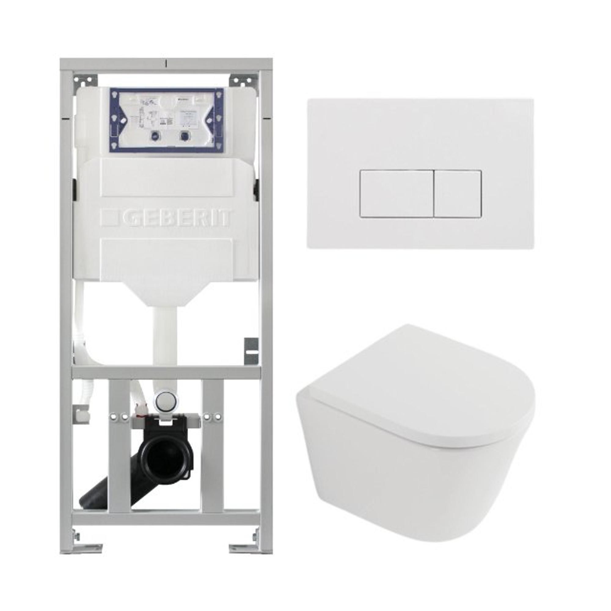 QeramiQ Dely Toiletset - 36.3x51.7cm - diepspoel - rimless - Geberit UP320 inbouwreservoir - met Burda frame - softclose toilet zitting 35 mm - glans witte bedieningsplaat - rechthoekige knoppen - mat wit