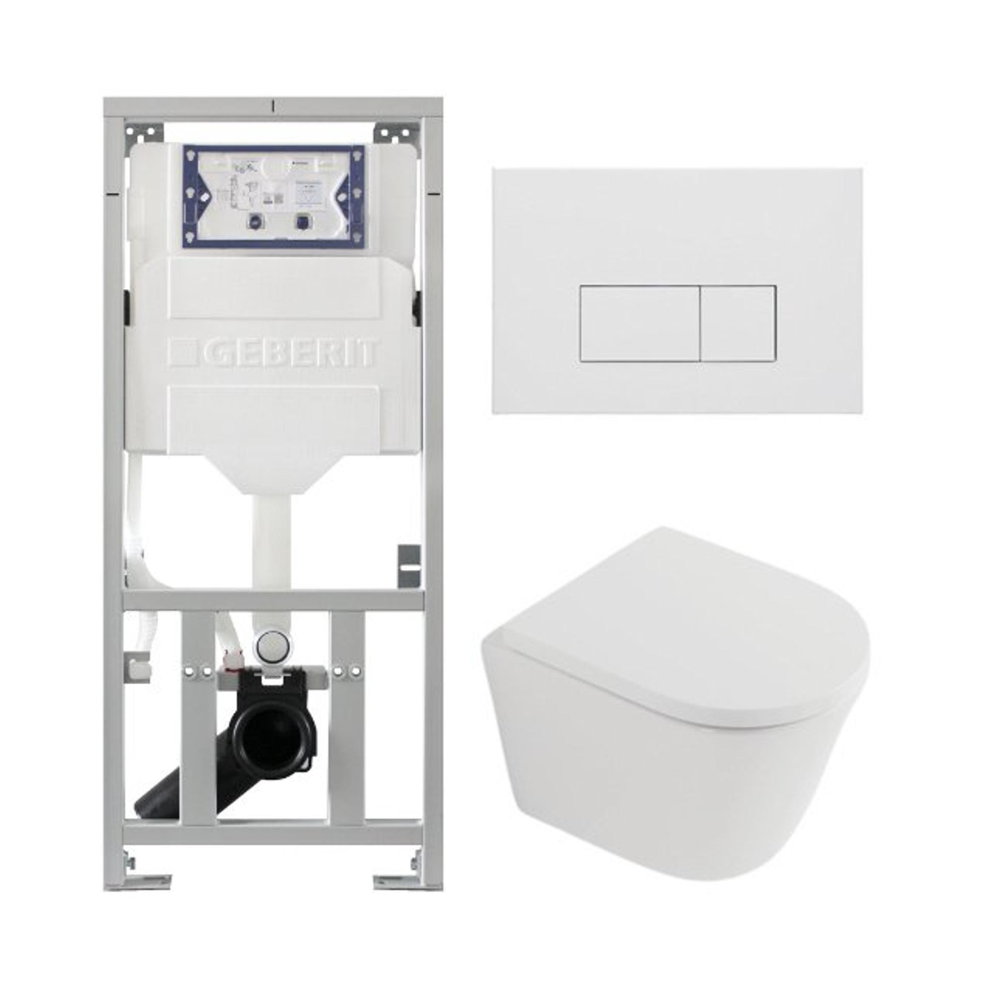 QeramiQ Dely Toiletset - 36.3x51.7cm - diepspoel - rimless - Geberit UP320 inbouwreservoir - softclose toiletzitting - mat witte bedieningsplaat - rechtehoekige knoppen - mat wit
