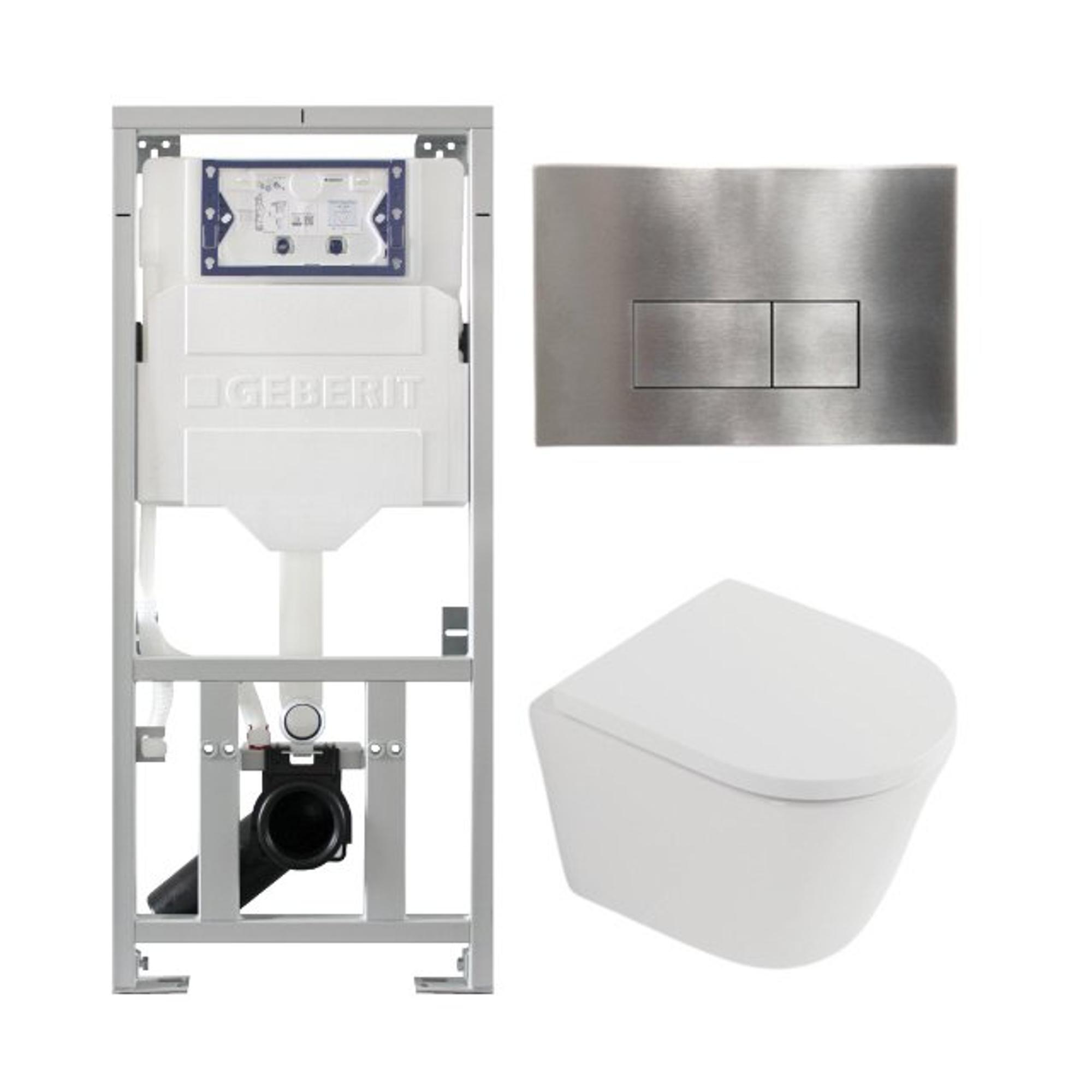 QeramiQ Dely Toiletset - 36.3x51.7cm - diepspoel - rimless - Geberit UP320 inbouwreservoir - softclose toiletzitting - steel bedieningsplaat - rechtehoekige knoppen - mat wit