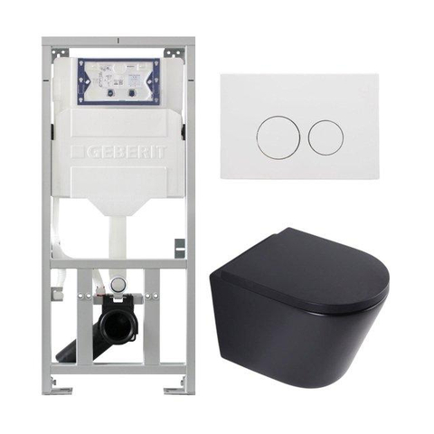 QeramiQ Dely Toiletset - 36.3x51.7cm - diepspoel - rimless - Geberit UP320 inbouwreservoir - softclose toiletzitting - mat witte bedieningsplaat - ronde knoppen - mat zwart
