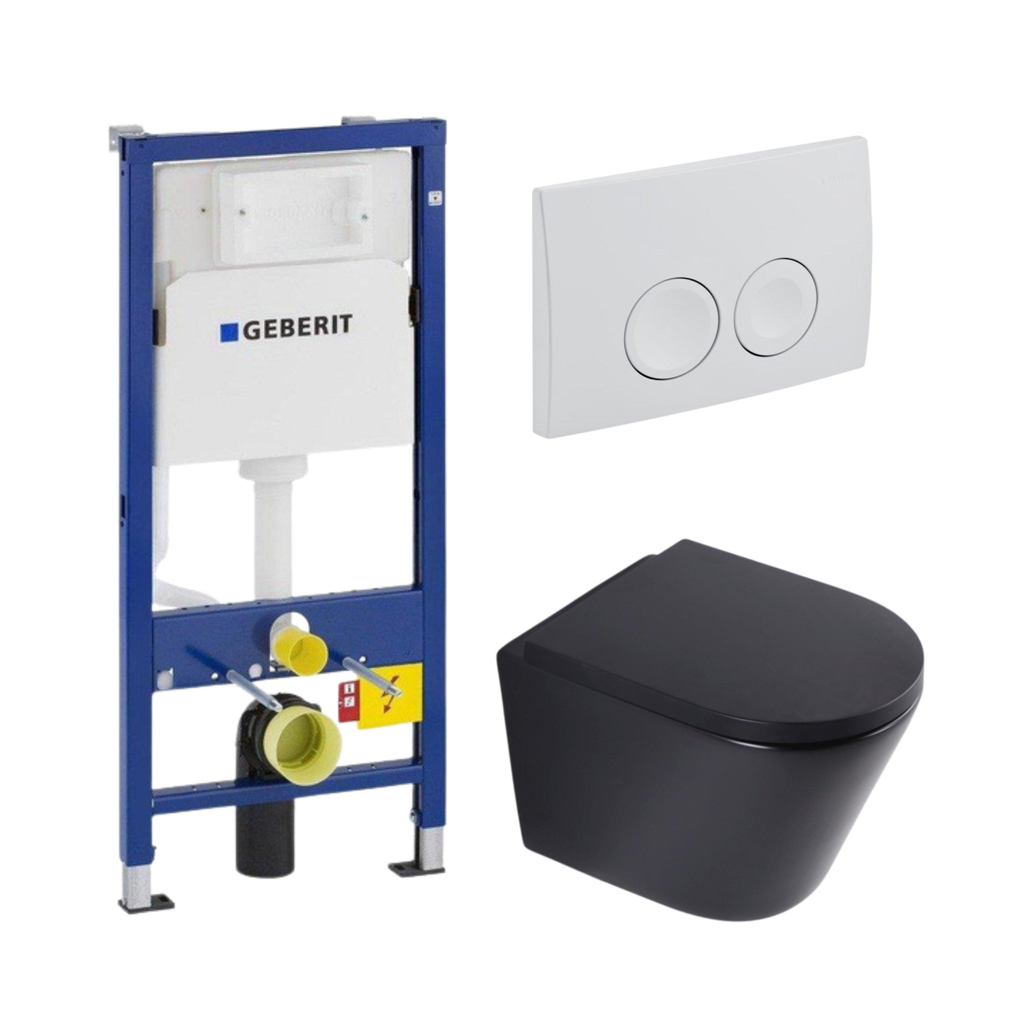 QeramiQ Dely Toiletset - Geberit UP100 inbouwreservoir - witte bedieningsplaat - toilet - zitting - mat zwart