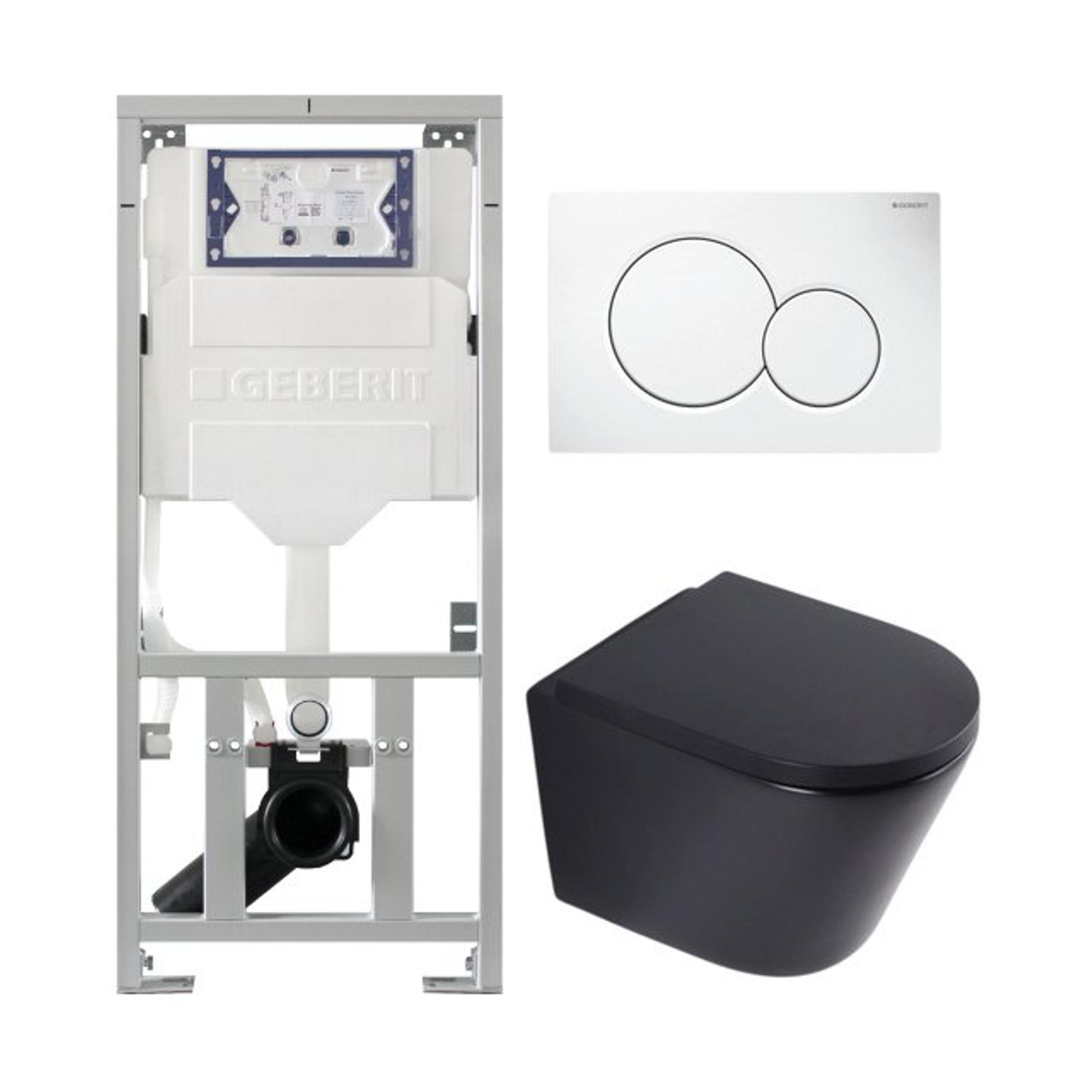 QeramiQ Dely Toiletset - Geberit UP320 inbouwreservoir - met Burda frame - witte bedieningsplaat - softclose toilet zitting 35 mm - mat zwart