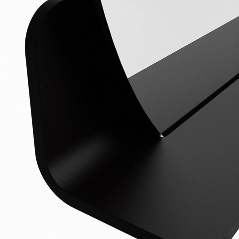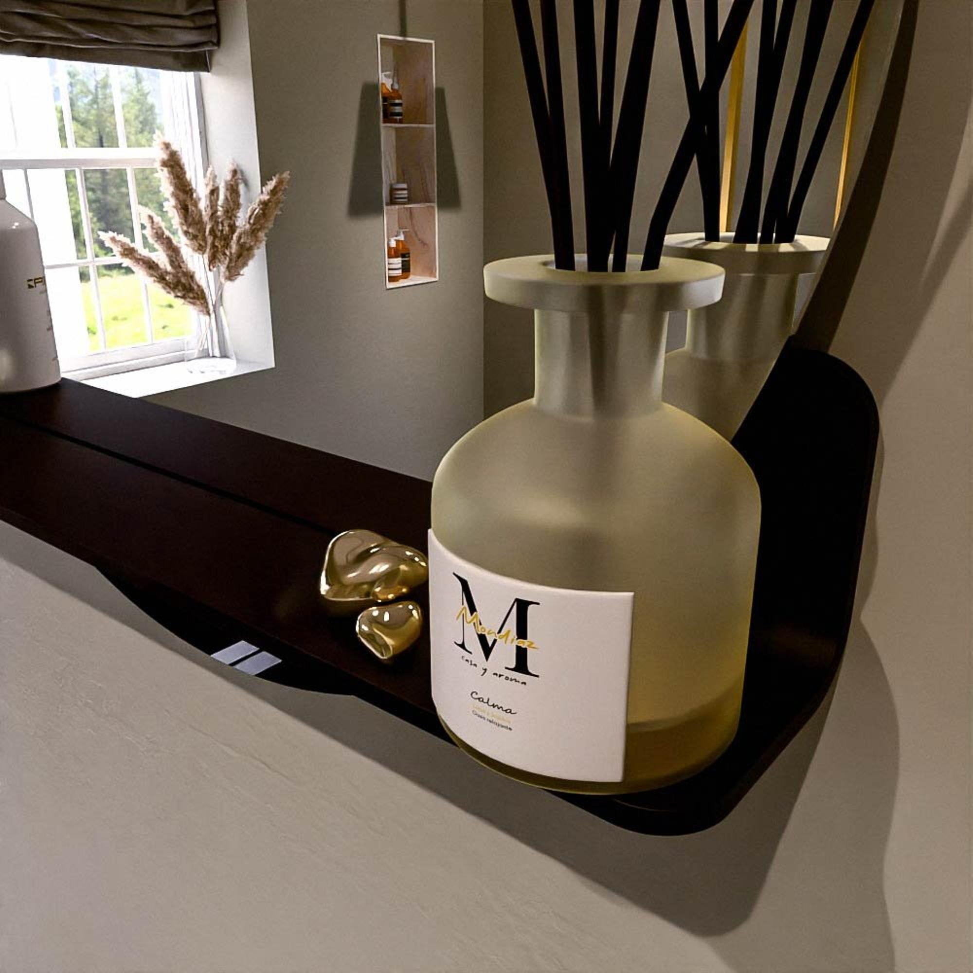 Het planchet, met zijn vloeiend afgeronde hoeken, biedt handige opbergruimte voor uw dagelijkse benodigdheden. De spiegel is subtiel verzonken in het planchet, wat zorgt voor een moderne en stijlvolle uitstraling.