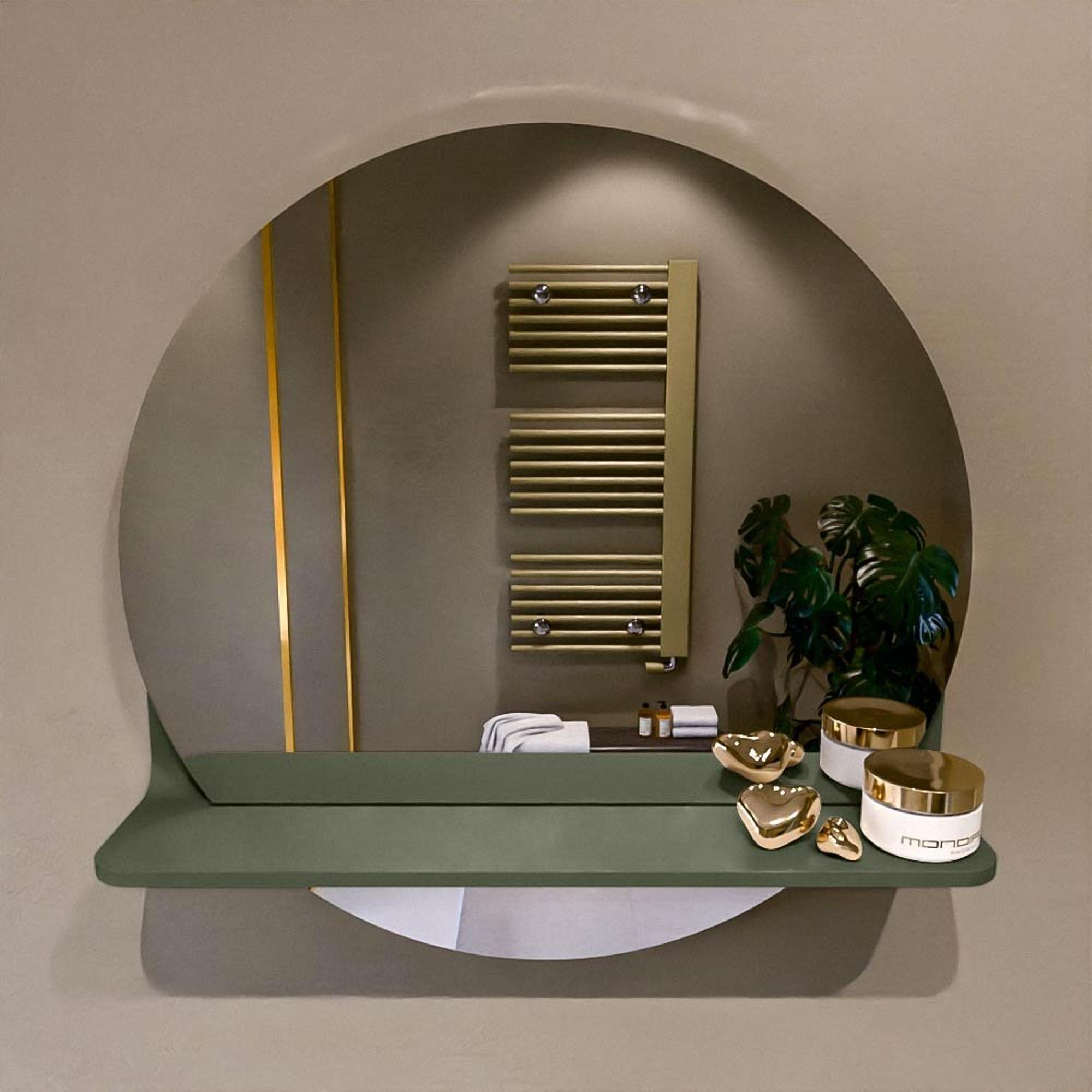 Mondiaz SPOT Badkamerspiegel - rond 50cm - spiegelplanchet - kleur Army