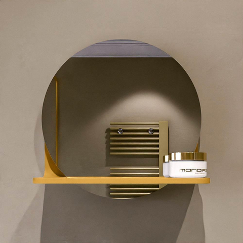 Mondiaz SPOT Badkamerspiegel - rond 30cm - spiegelplanchet - kleur Ocher