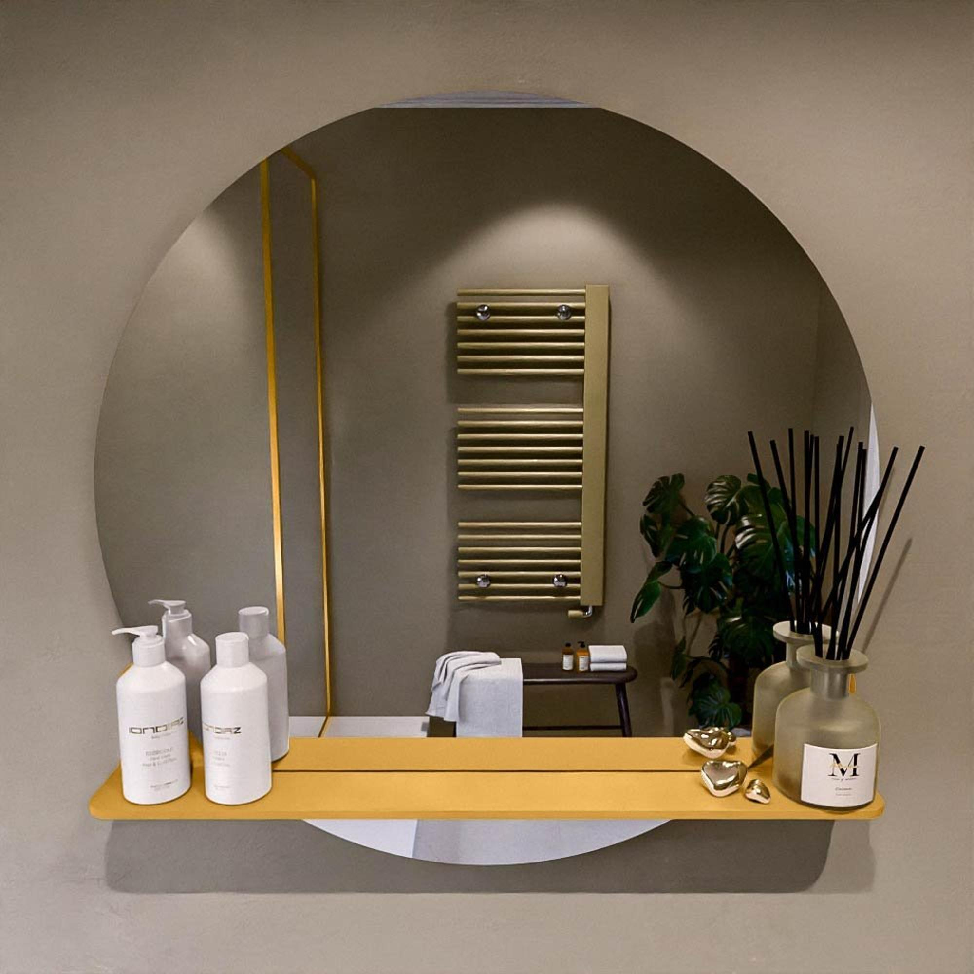 Mondiaz SPOT Badkamerspiegel - rond 80cm - spiegelplanchet - kleur Ocher