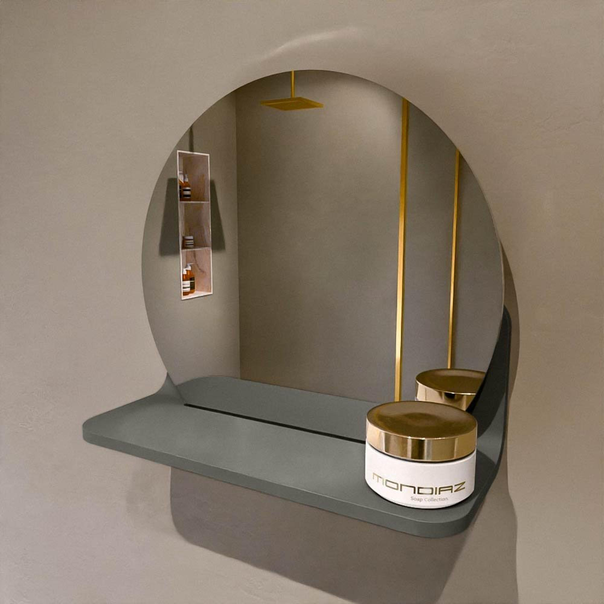 Mondiaz SPOT Badkamerspiegel - rond 30cm - spiegelplanchet - kleur Smoke
