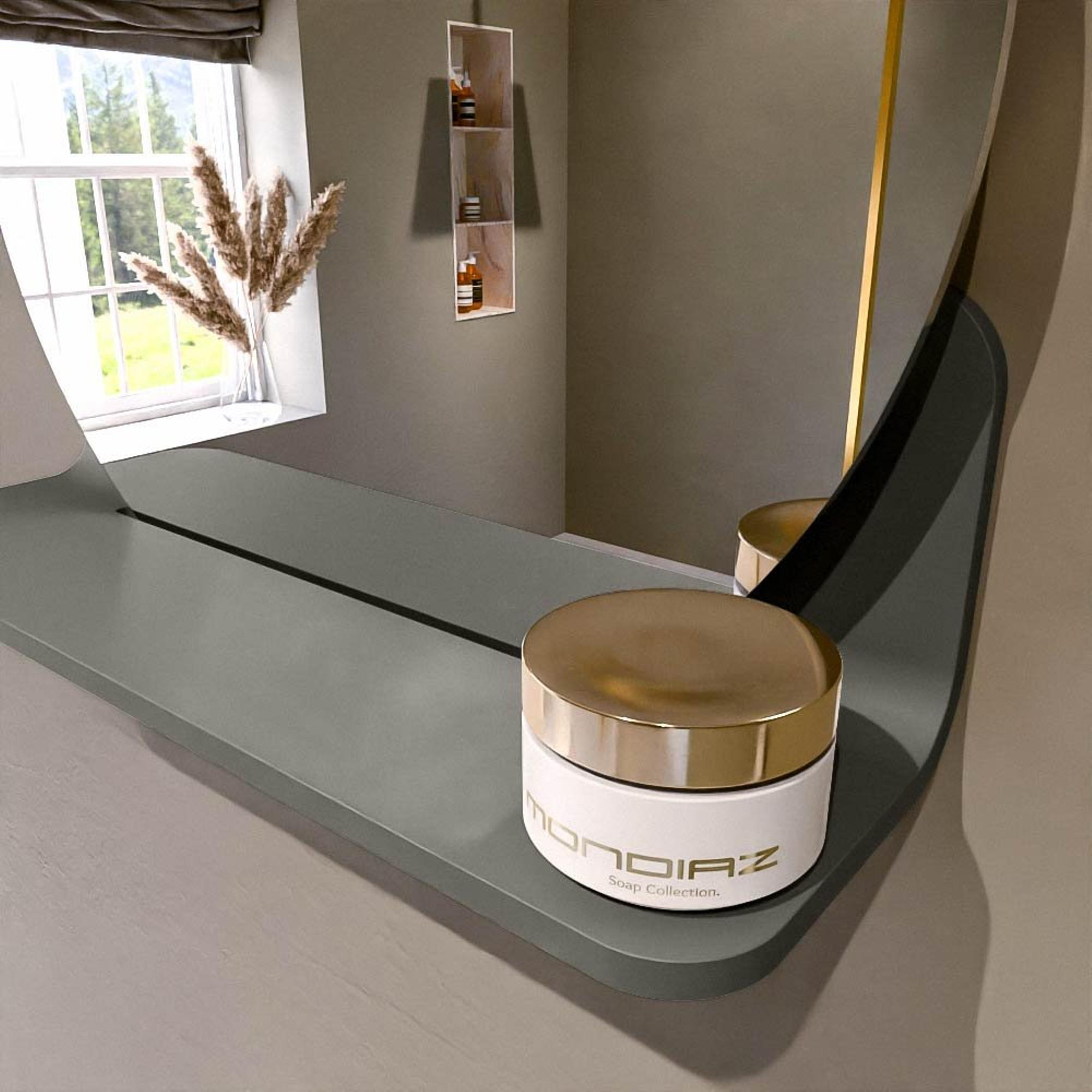 Beschikbaar in 17 effen kleuren die perfect passen bij elke inrichting. Solid Surface is krasbestendig, onderhoudsvriendelijk en garandeert een langdurige, luxueuze afwerking. Deze spiegel biedt de ideale combinatie van functionaliteit en design!