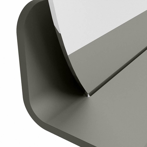 Het planchet, met zijn vloeiend afgeronde hoeken, biedt handige opbergruimte voor uw dagelijkse benodigdheden. De spiegel is subtiel verzonken in het planchet, wat zorgt voor een moderne en stijlvolle uitstraling.