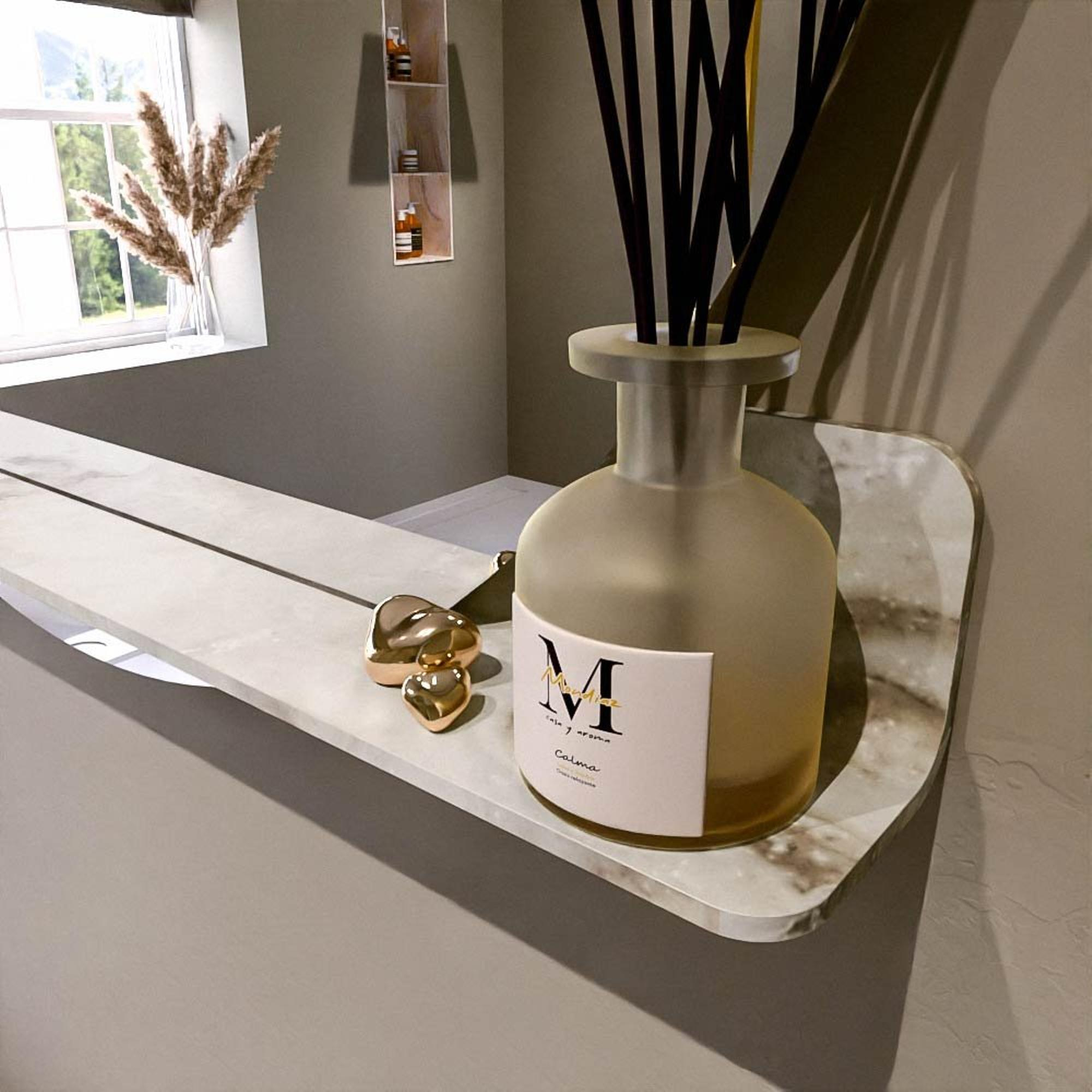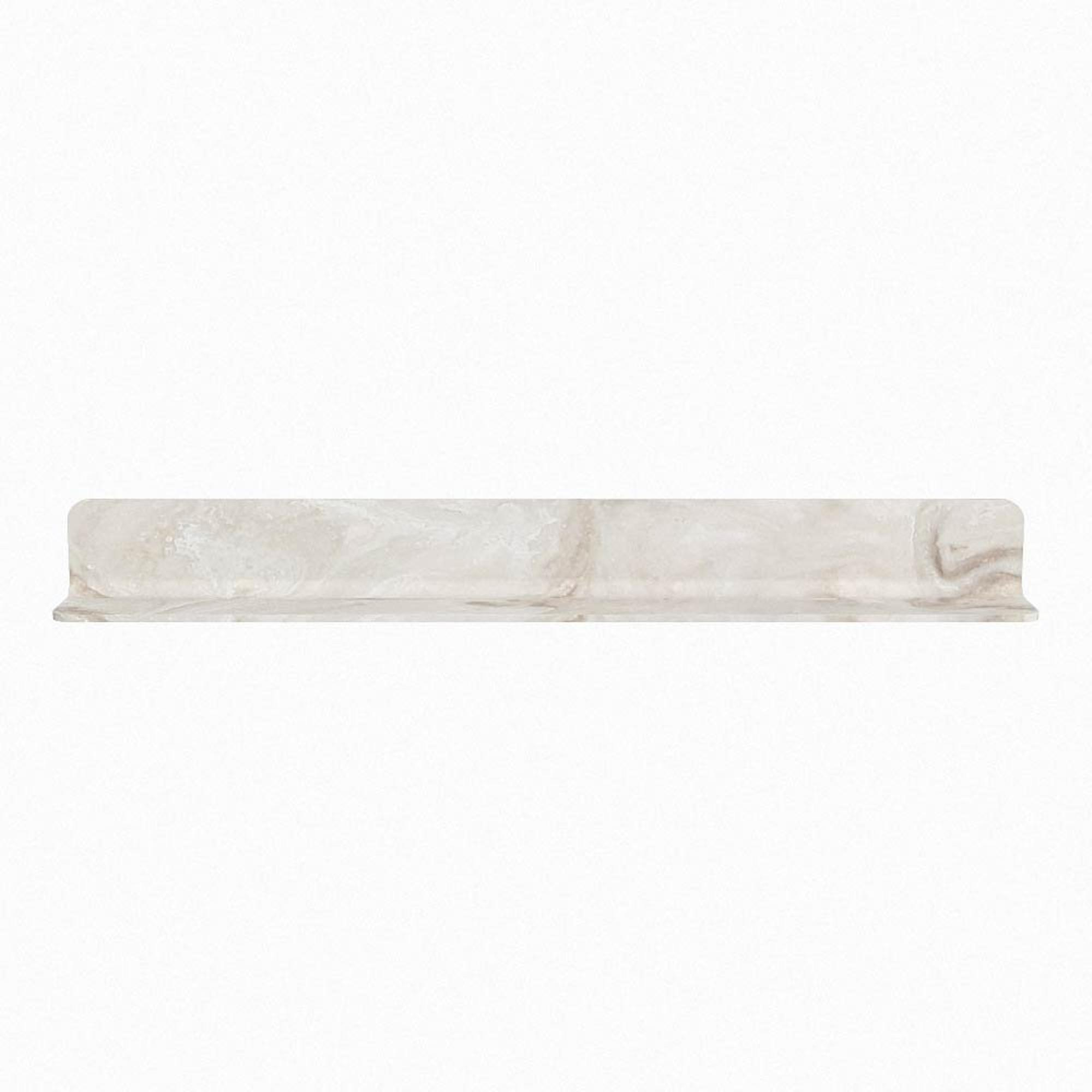 Het planchet, met zijn vloeiend afgeronde hoeken, biedt handige opbergruimte voor uw dagelijkse benodigdheden. De spiegel is subtiel verzonken in het planchet, wat zorgt voor een moderne en stijlvolle uitstraling.