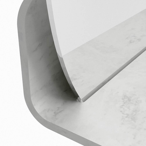 Geef uw ruimte een elegante en praktische Touch met deze ronde spiegel, waarbij de spiegel prachtig is verwerkt in een verfijnd planchet van Corian Solid Surface. Het design is niet alleen functioneel, maar ook een stijlvolle toevoeging aan moderne interieurs, ideaal te combineren met onze de DLUX-serie, zoals de ALAN, de VICA en de TURE DLUX.