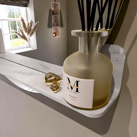 Beschikbaar in 5 CORIAN kleuren die perfect passen bij elke inrichting. Solid Surface is krasbestendig, onderhoudsvriendelijk en garandeert een langdurige, luxueuze afwerking. Deze spiegel biedt de ideale combinatie van functionaliteit en design!