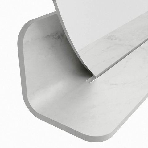 Het planchet, met zijn vloeiend afgeronde hoeken, biedt handige opbergruimte voor uw dagelijkse benodigdheden. De spiegel is subtiel verzonken in het planchet, wat zorgt voor een moderne en stijlvolle uitstraling.