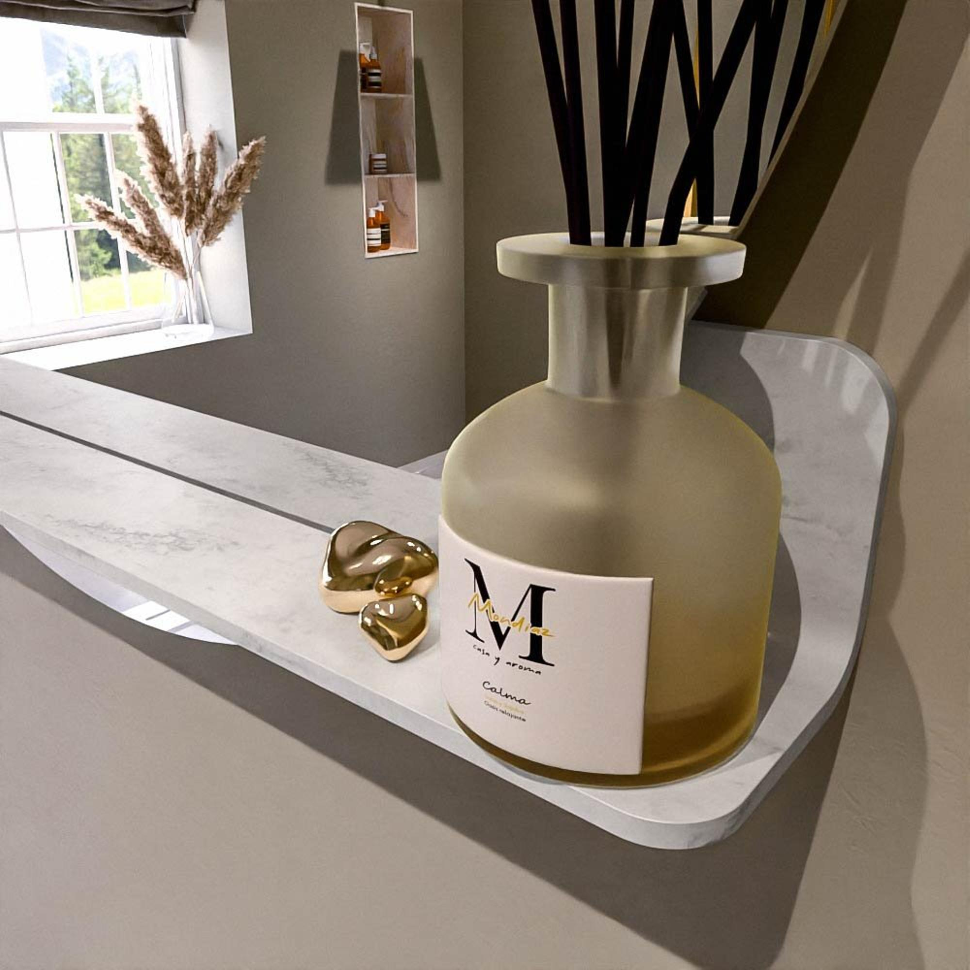 Beschikbaar in 5 CORIAN kleuren die perfect passen bij elke inrichting. Solid Surface is krasbestendig, onderhoudsvriendelijk en garandeert een langdurige, luxueuze afwerking. Deze spiegel biedt de ideale combinatie van functionaliteit en design!