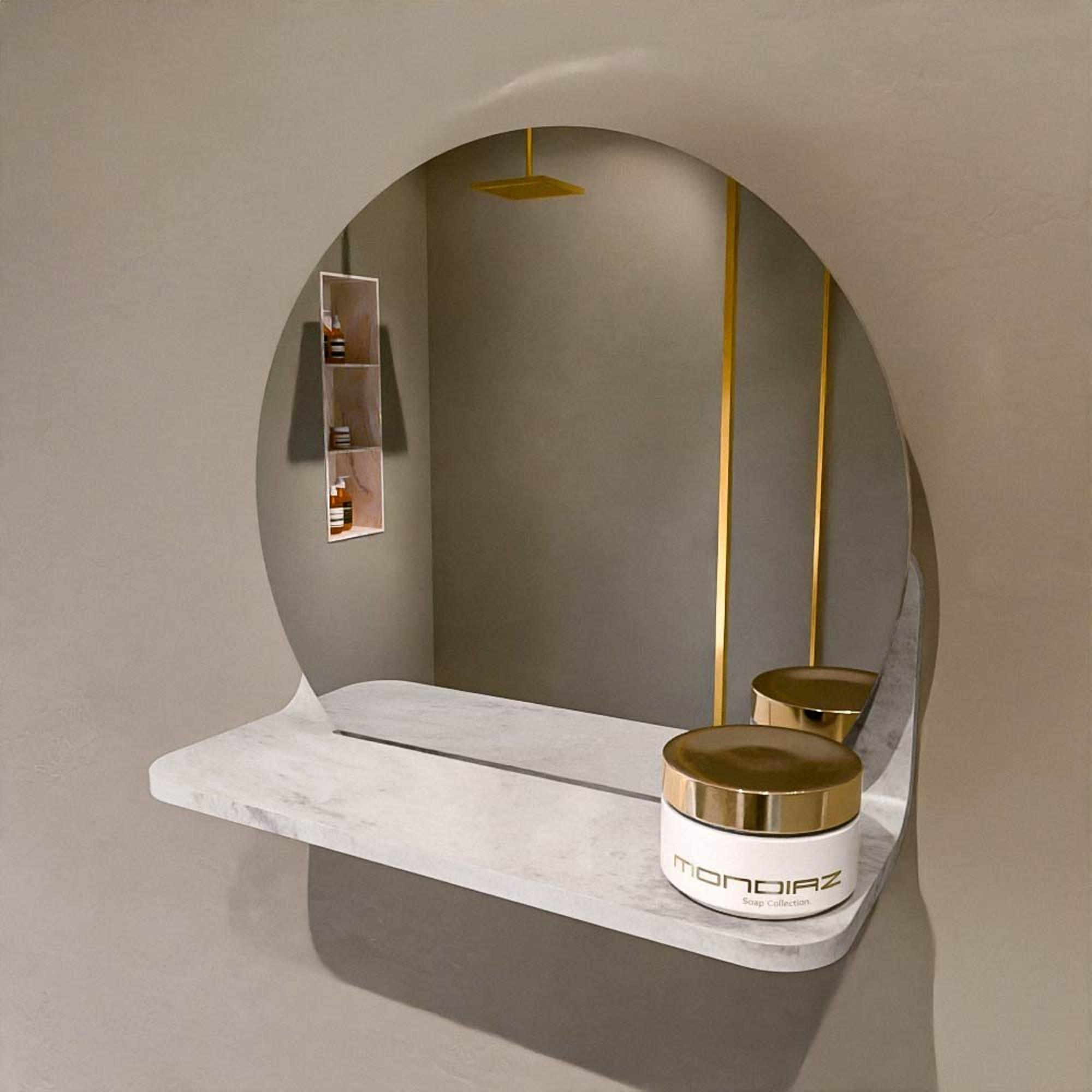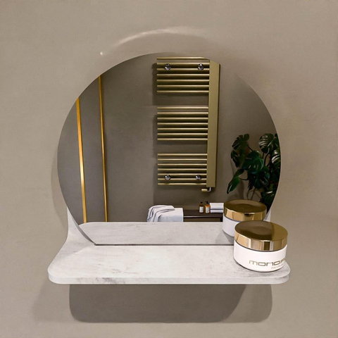 Mondiaz SPOT Badkamerspiegel - rond 30cm - spiegelplanchet - kleur Ostra
