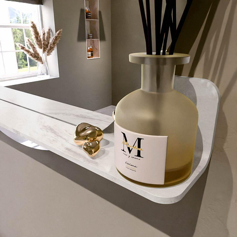 Beschikbaar in 5 CORIAN kleuren die perfect passen bij elke inrichting. Solid Surface is krasbestendig, onderhoudsvriendelijk en garandeert een langdurige, luxueuze afwerking. Deze spiegel biedt de ideale combinatie van functionaliteit en design!