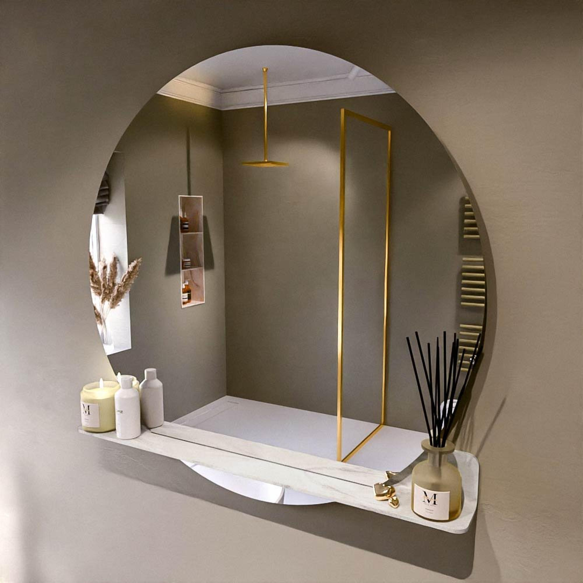 Mondiaz SPOT Badkamerspiegel - rond 110cm - spiegelplanchet - kleur Ostra