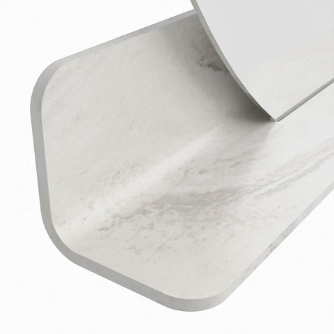 Het planchet, met zijn vloeiend afgeronde hoeken, biedt handige opbergruimte voor uw dagelijkse benodigdheden. De spiegel is subtiel verzonken in het planchet, wat zorgt voor een moderne en stijlvolle uitstraling.