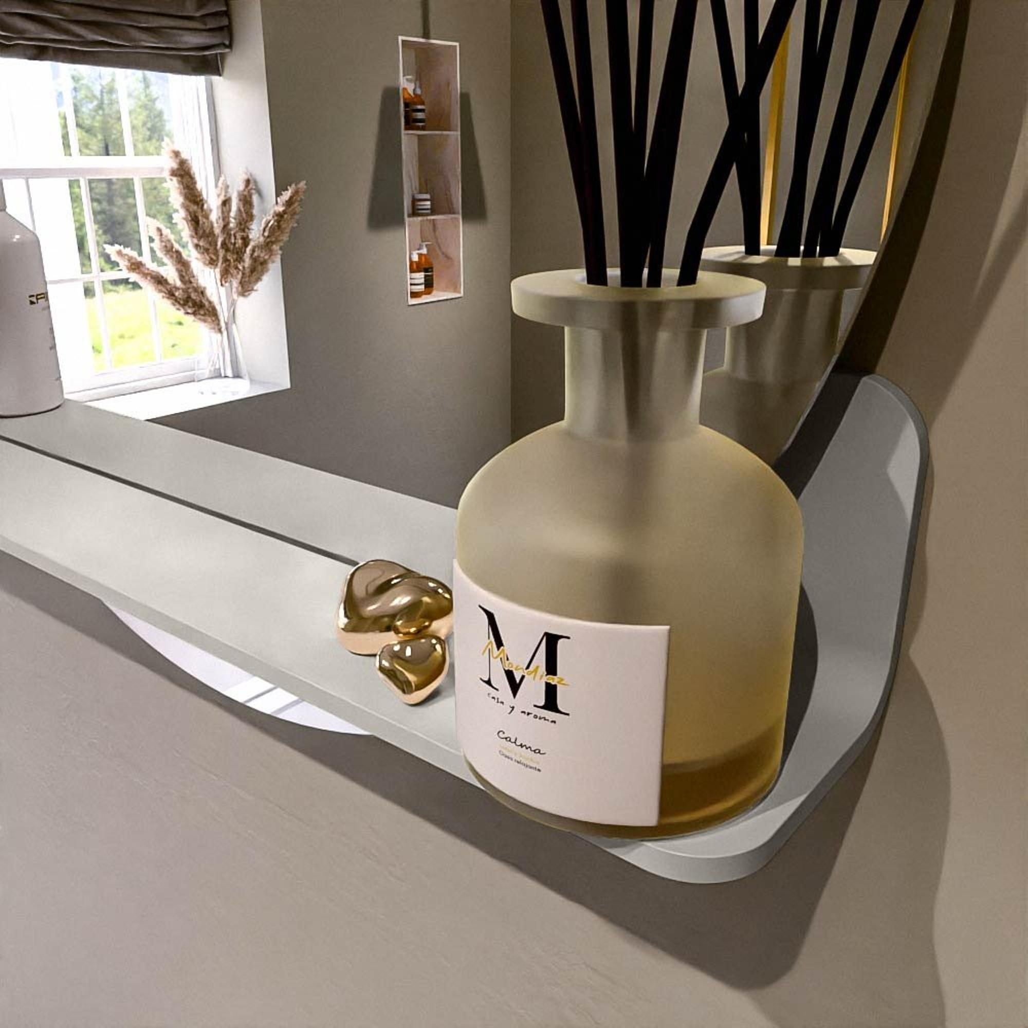 Beschikbaar in 17 effen kleuren die perfect passen bij elke inrichting. Solid Surface is krasbestendig, onderhoudsvriendelijk en garandeert een langdurige, luxueuze afwerking. Deze spiegel biedt de ideale combinatie van functionaliteit en design!