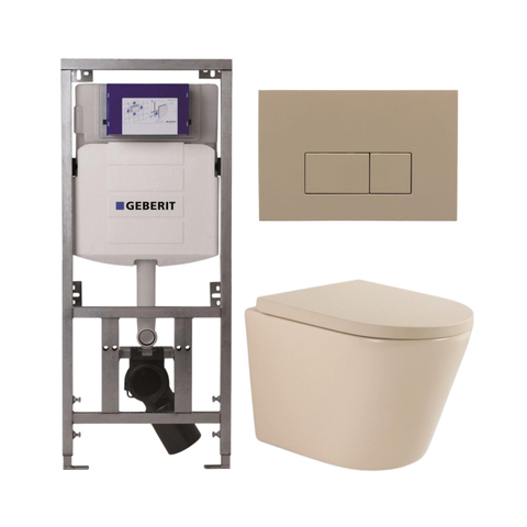QeramiQ Dely Toiletset - 36.3x51.7cm - diepspoel - rimless - Geberit UP320 inbouwreservoir - softclose toilet zitting 35 mm - bedieningsplaat taupe - rechthoekige knoppen - mat beige