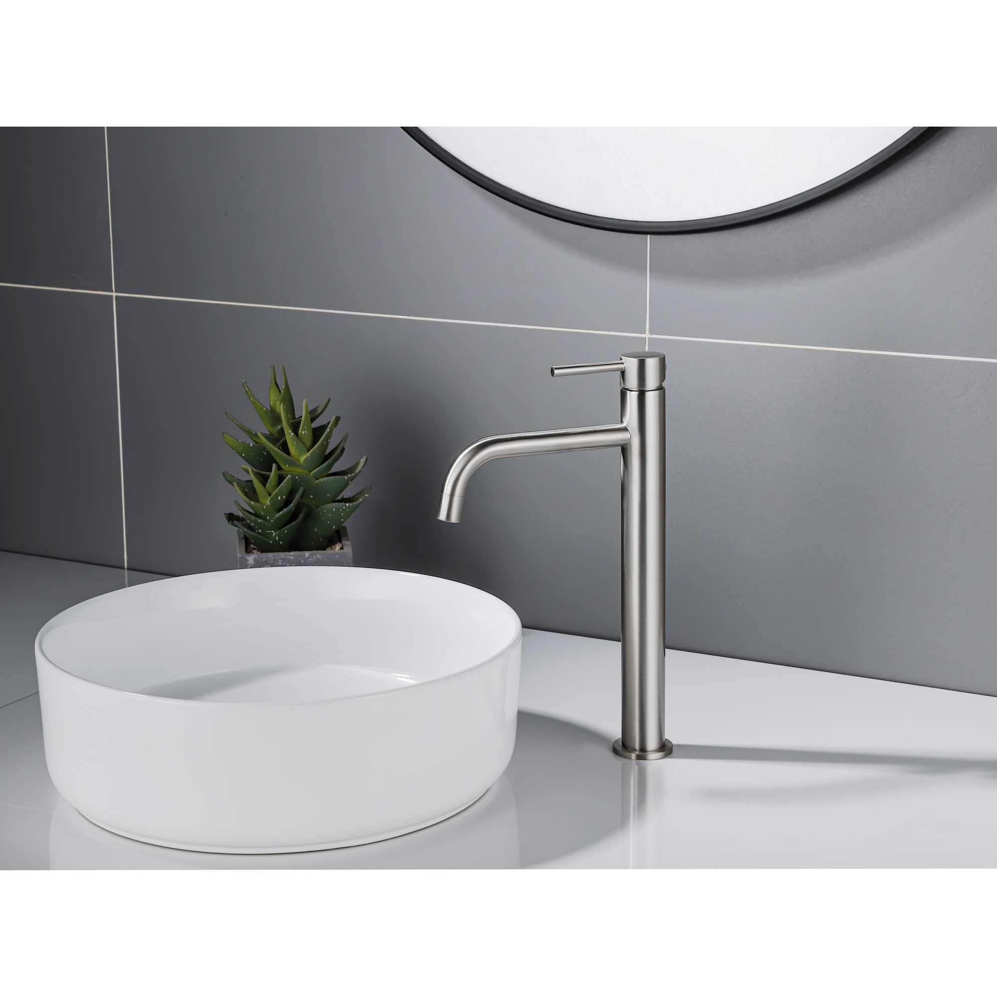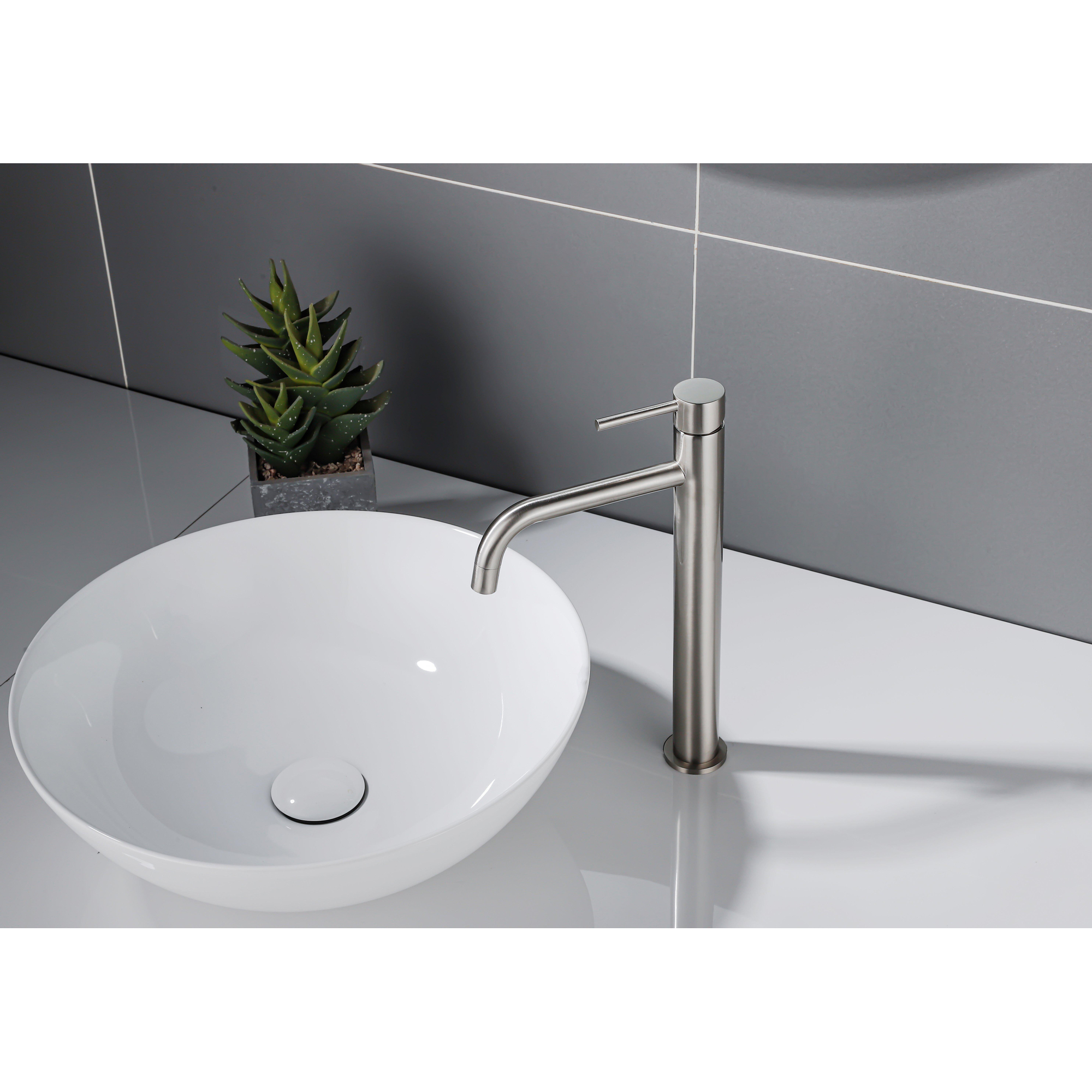 De Fortifura Calvi Slim Wastafelkraan straalt een tijdloze elegantie uit die moeiteloos past bij verschillende badkamerstijlen. Het slanke ontwerp en de verhoogde positie geven een gevoel van luxe en verfijning aan de ruimte. De geborsteld roestvrijstalen afwerking met PVD-coating zorgt voor een duurzame glans die jarenlang meegaat, waardoor deze kraan een blijvende indruk maakt.