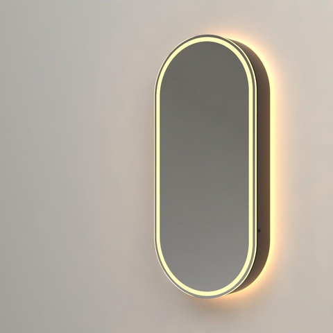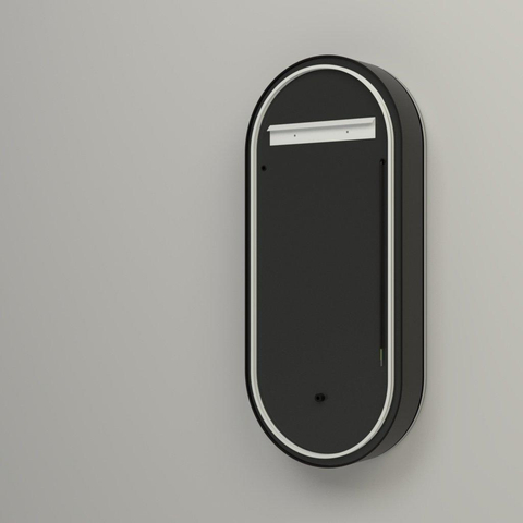 Saniclass Shine Spiegelkast - 45x100x14cm - ovaal - indirecte verlichting LED - spiegelverwarming - zwart