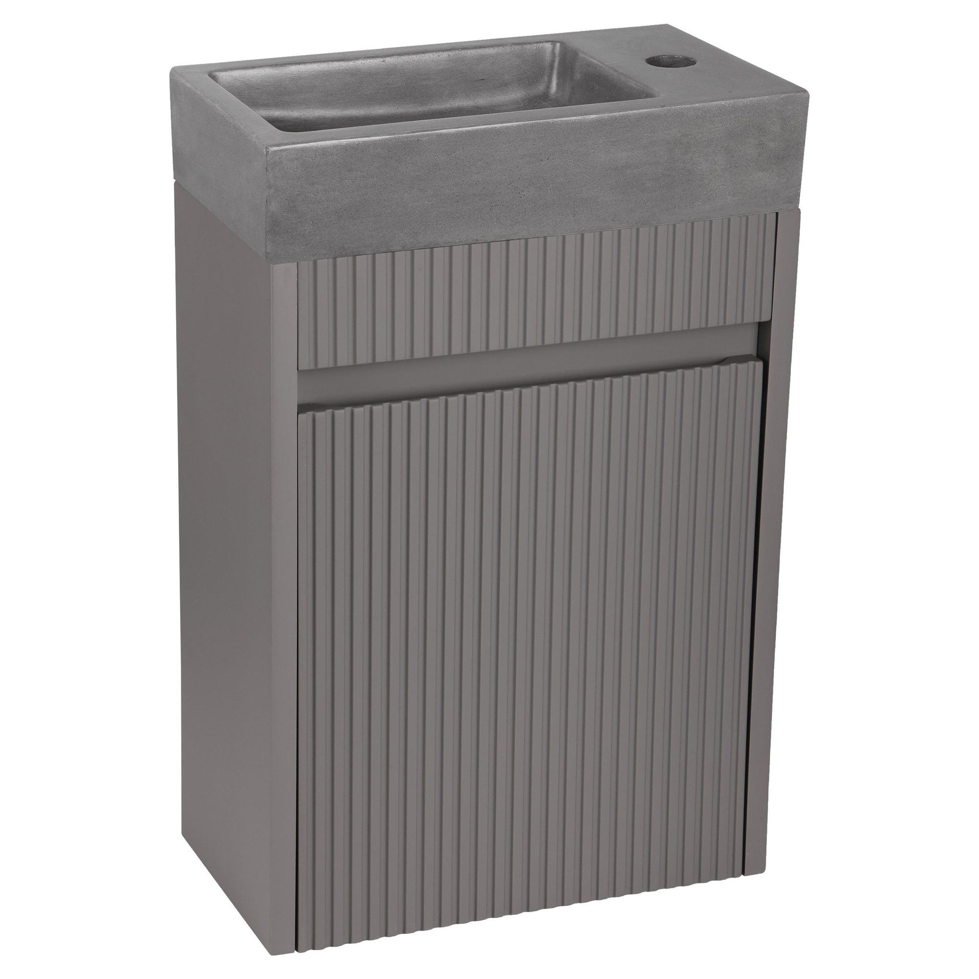 Met zijn strakke lijnen en grijze betonnen afwerking voegt de Differnz Hura Fontein een vleugje eigentijdse elegantie toe aan elke badkamer. Het minimalistische ontwerp straalt verfijning uit en creëert een harmonieus evenwicht tussen vorm en functie. Een ware blikvanger die de ruimte verheft tot een luxe omgeving van rust en schoonheid.