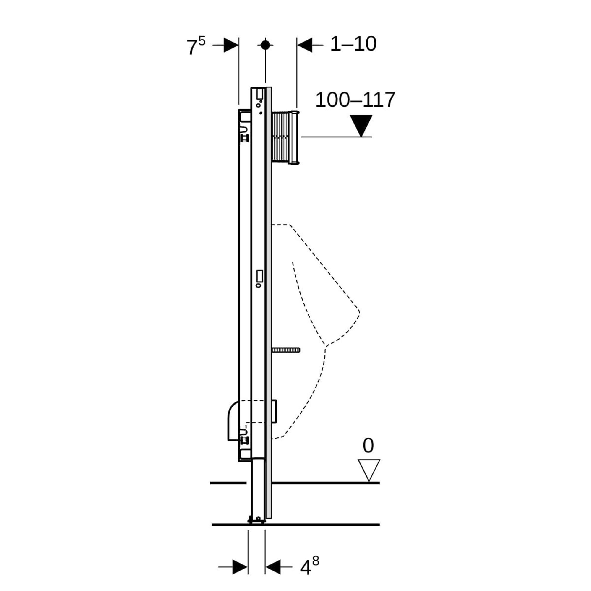 Geberit Duofix Urinoir element 130cm universeel voor urinoirstuursysteem basic