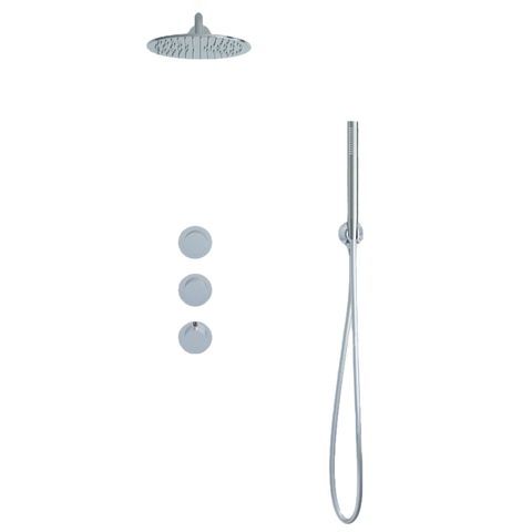 Fortifura Nebbio Regendoucheset - inbouwkraan - inbouwdeel - wandaansluitbocht - doucheslang glad - staafhanddouche - 35cm wandarm - 30cm ronde hoofddouche - chroom