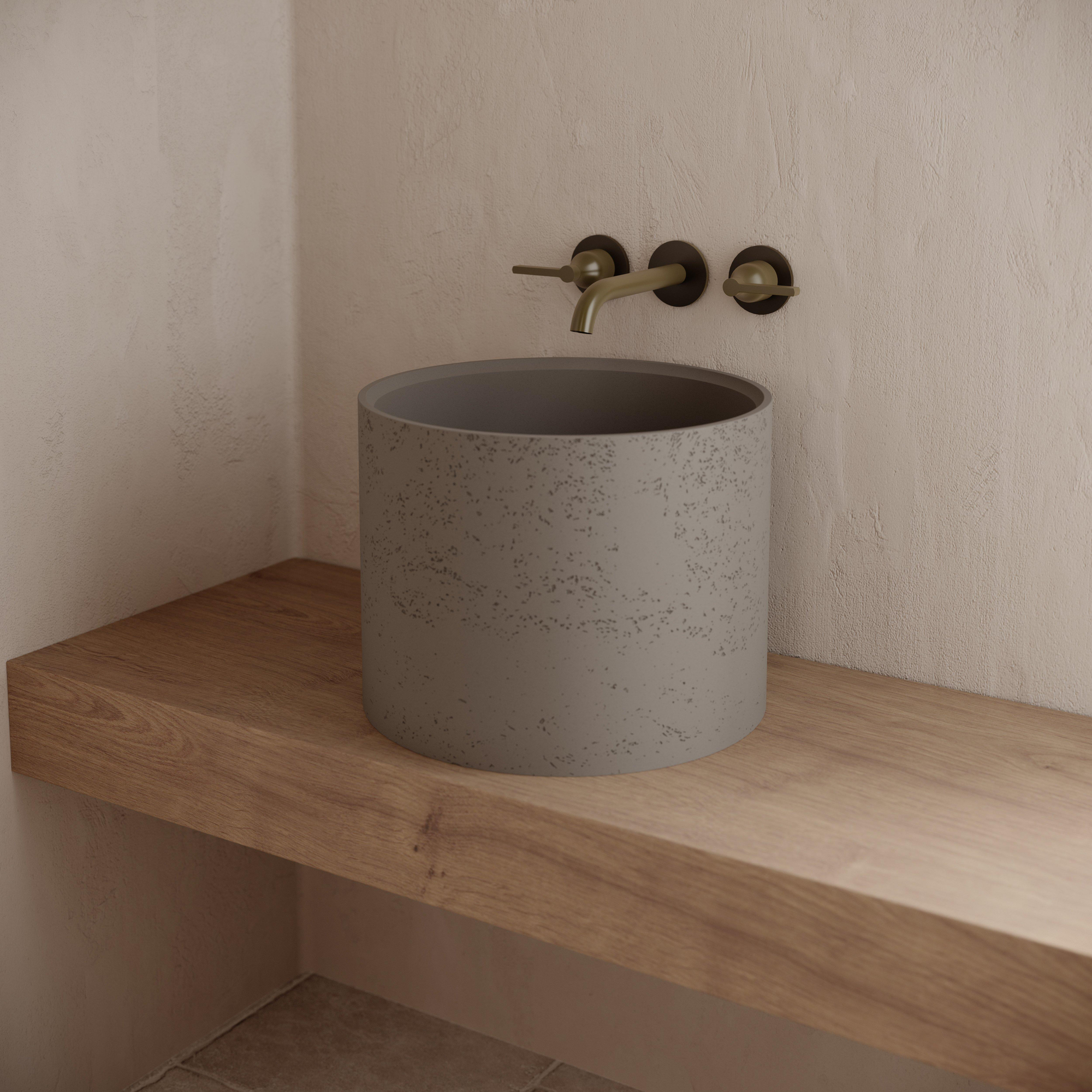 De donkergrijze betonafwerking geeft jouw badkamer direct een hoogwaardige, bijna spa-achtige uitstraling. Het materiaal oogt robuust en puur, maar door de verfijnde vormgeving blijft de waskom elegant en ingetogen. Zo combineer je de charme van beton met het comfort van modern sanitair. De ronde vorm met een diameter van 39 cm zorgt voor een zachte, vriendelijke look die mooi contrasteert met rechte lijnen in tegelwerk of meubel. Bovendien maakt de neutrale grijstint het eenvoudig om kleuren en materialen rond de waskom aan te passen: van zwarte of gunmetal kranen tot lichte houtsoorten en witte wanden, bijna alles matcht moeiteloos. Daarmee is dit een veilige maar toch uitgesproken keuze als je langdurig van je badkamer wilt genieten.