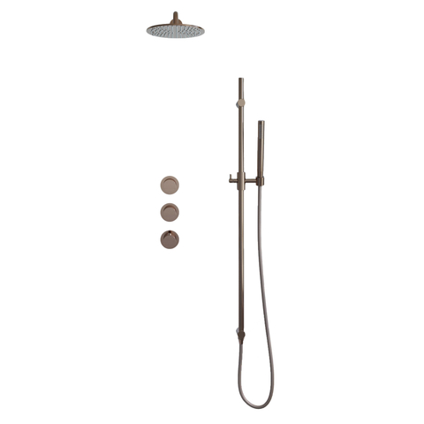 Fortifura Nebbio Regendoucheset - inbouwkraan - inbouwdeel - glijstang - doucheslang metaal - staaf handdouche - 35cm wandarm - 30cm ronde hoofddouche - geborsteld koper PVD (koper)