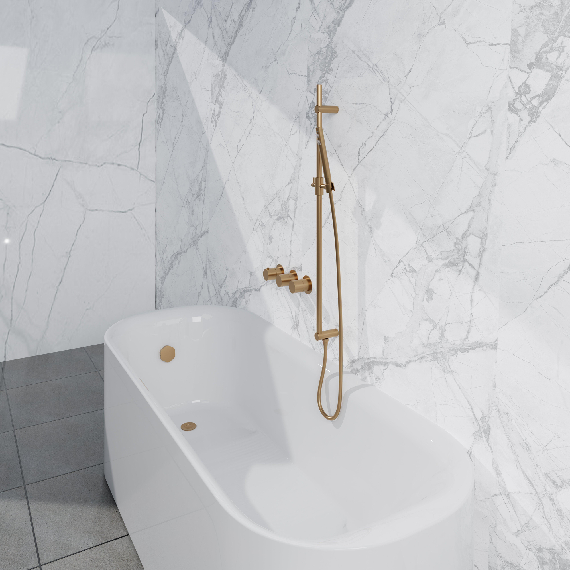 Laat je badkamer schitteren met de stijlvolle Fortifura Nebbio Badcombinatie-set. Het geborsteld messing PVD (goud) geeft een tijdloze en elegante uitstraling aan het geheel. Elk onderdeel van deze set is zorgvuldig ontworpen om naadloos op te gaan in je badkamerinterieur, terwijl het tegelijkertijd een vleugje glamour toevoegt. Met deze set voeg je een vleugje luxe toe aan je dagelijkse routine, waardoor je elke douche- of badervaring verheven wordt tot een stijlvolle gebeurtenis.
