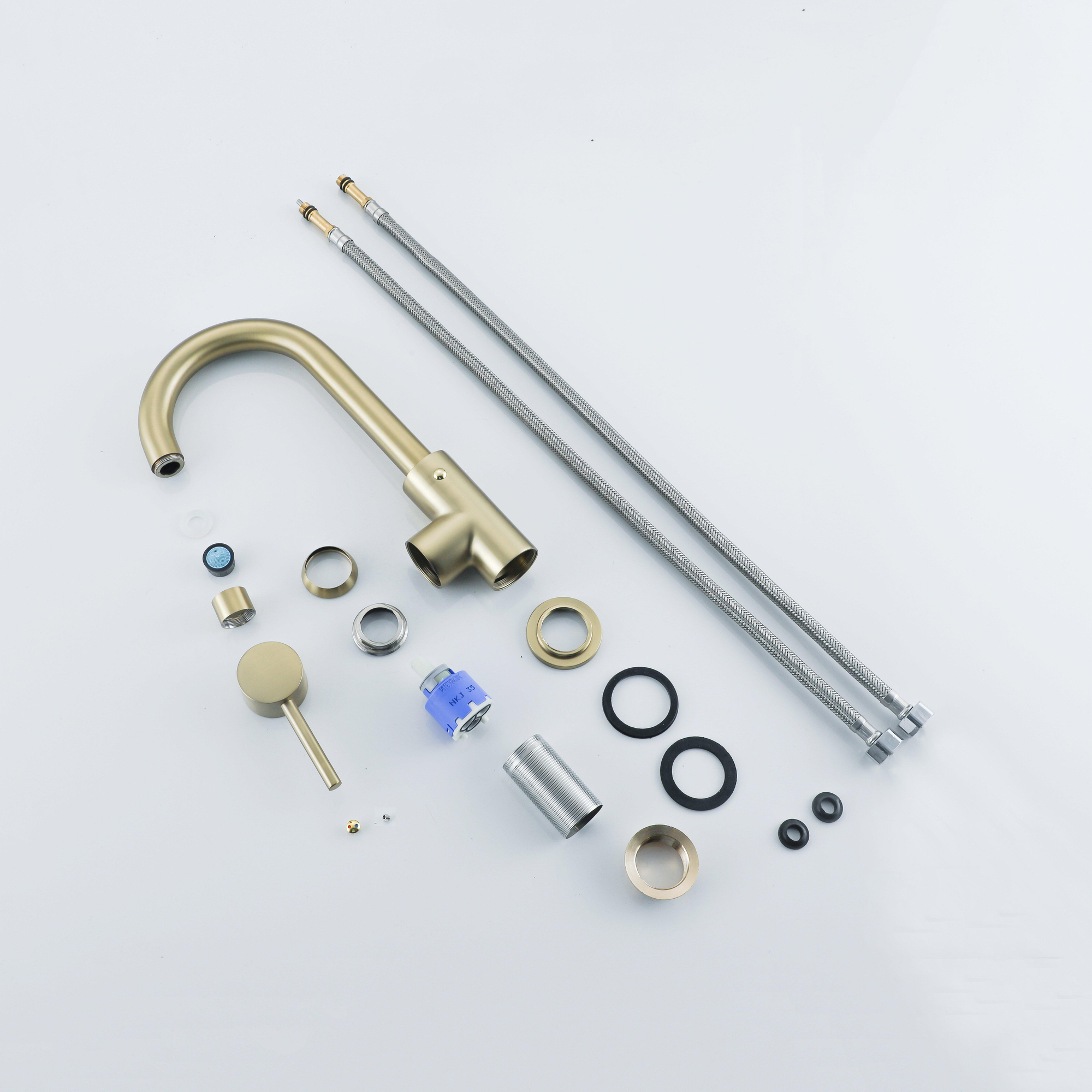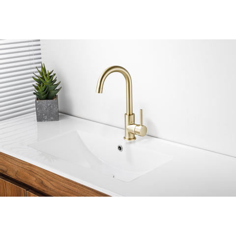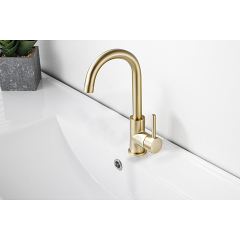 Fortifura Calvi Wastafelmengkraan - hoog - draaibare uitloop - Geborsteld messing PVD