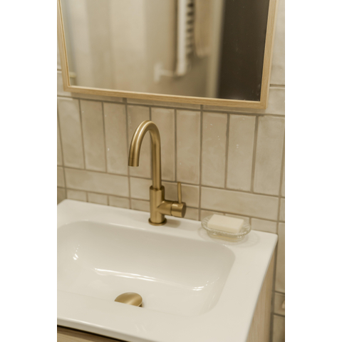 De Fortifura Calvi Wastafelmengkraan straalt elegantie uit in elke badkamer. De geborsteld messing PVD afwerking geeft de kraan een luxe uitstraling en voegt een vleugje warmte toe aan de ruimte. Het slanke ontwerp en de hoogte van de kraan creëren een gevoel van verfijning en klasse. Deze kraan is niet alleen een functioneel element in de badkamer, maar ook een decoratief accent dat de ruimte transformeert tot een oase van rust en schoonheid.