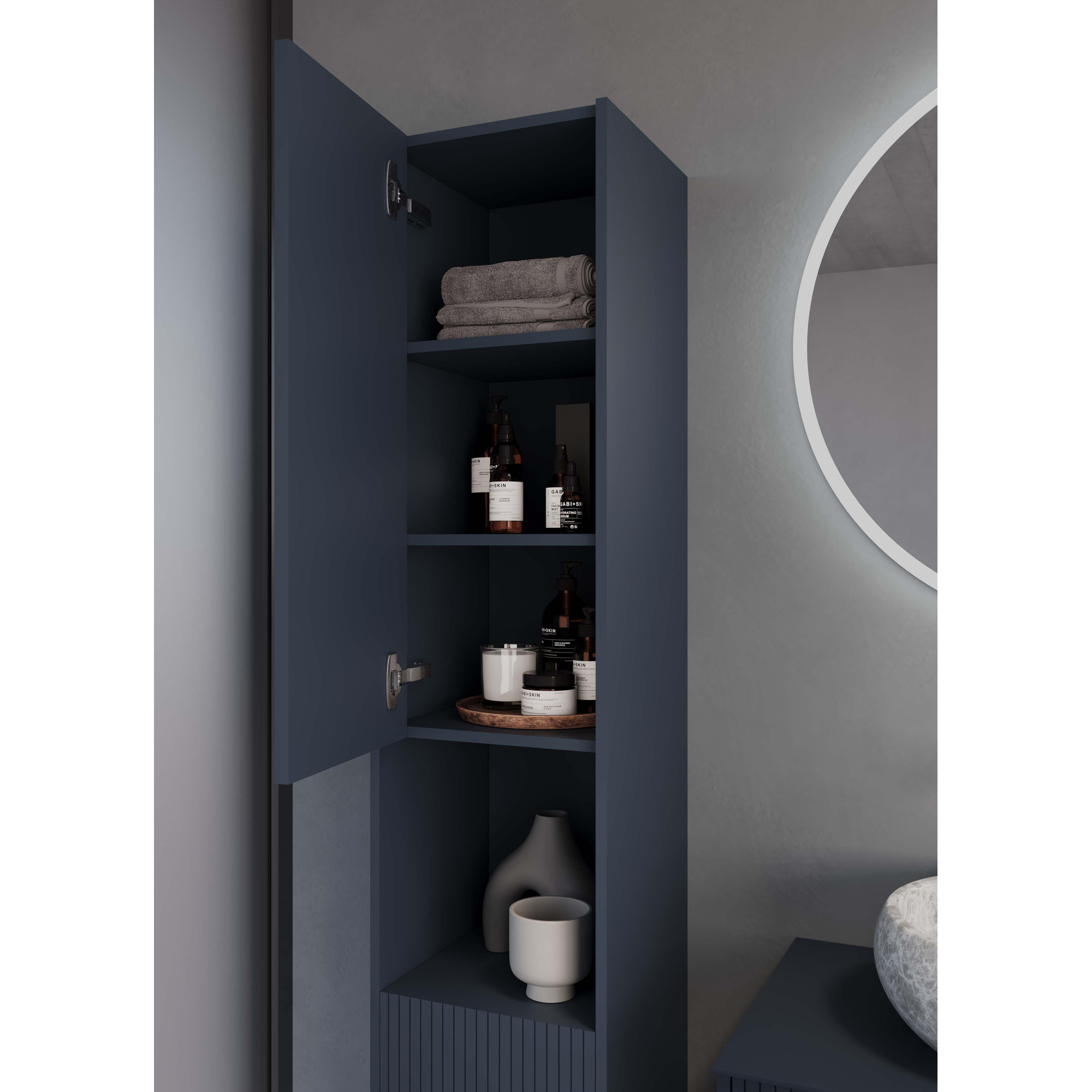 De Thebalux Modena Hoge kast is een perfecte toevoeging aan elke badkamer die op zoek is naar zowel stijl als functionaliteit. Met zijn prachtige Emerald Green kleur en verticaal geribbelde fronten, straalt deze kast een gevoel van luxe uit. De 4-voudig gelakte afwerking zorgt voor duurzaamheid en een gladde, hoogwaardige uitstraling. De push open deuren maken het gemakkelijk om snel toegang te krijgen tot je badkamerspullen, terwijl de nis extra opbergruimte biedt voor een opgeruimde badkamer.