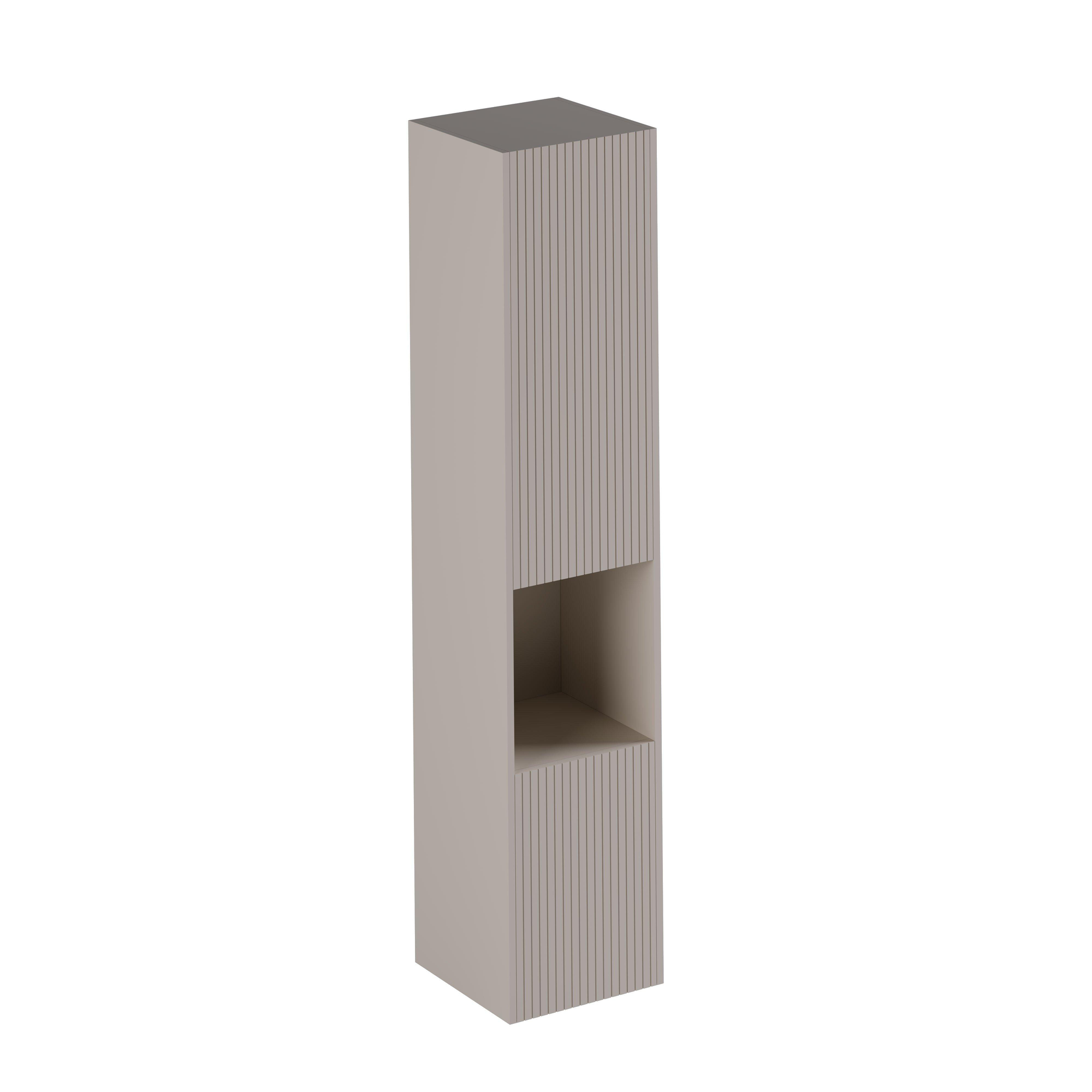 De Thebalux Modena Hoge kast is een toonbeeld van luxe en elegantie. Met zijn prachtige verticaal geribbelde fronten, vier voudig gelakt in een verfijnde Sahara Sand kleur, voegt deze kast een vleugje stijl toe aan elke badkamer. De twee deuren openen met een zachte push open mechanisme, waardoor je gemakkelijk toegang hebt tot al je benodigdheden. Deze kast is niet alleen functioneel, maar ook een eyecatcher in jouw badkamer.