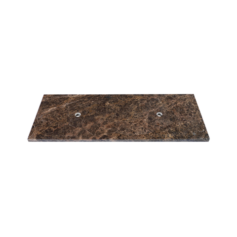 Met zijn donkere Emperador afwerking straalt dit topblad een gevoel van luxe en elegantie uit. Het natuursteen voegt een uniek karakter toe aan de badkamer, waardoor een gevoel van weelde en verfijning wordt gecreëerd. De rijke kleuren en texturen maken dit topblad tot een opvallend pronkstuk in elke badkameromgeving.