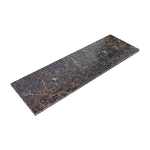 De verfijnde afwerking van dit topblad straalt pure elegantie uit. De donkere tinten van het Dark Emperador natuursteen voegen een vleugje mysterie toe aan je badkamer. Met dit topblad creëer je een sfeer van luxe en verfijning, waardoor je badkamer een ware oase van rust wordt.