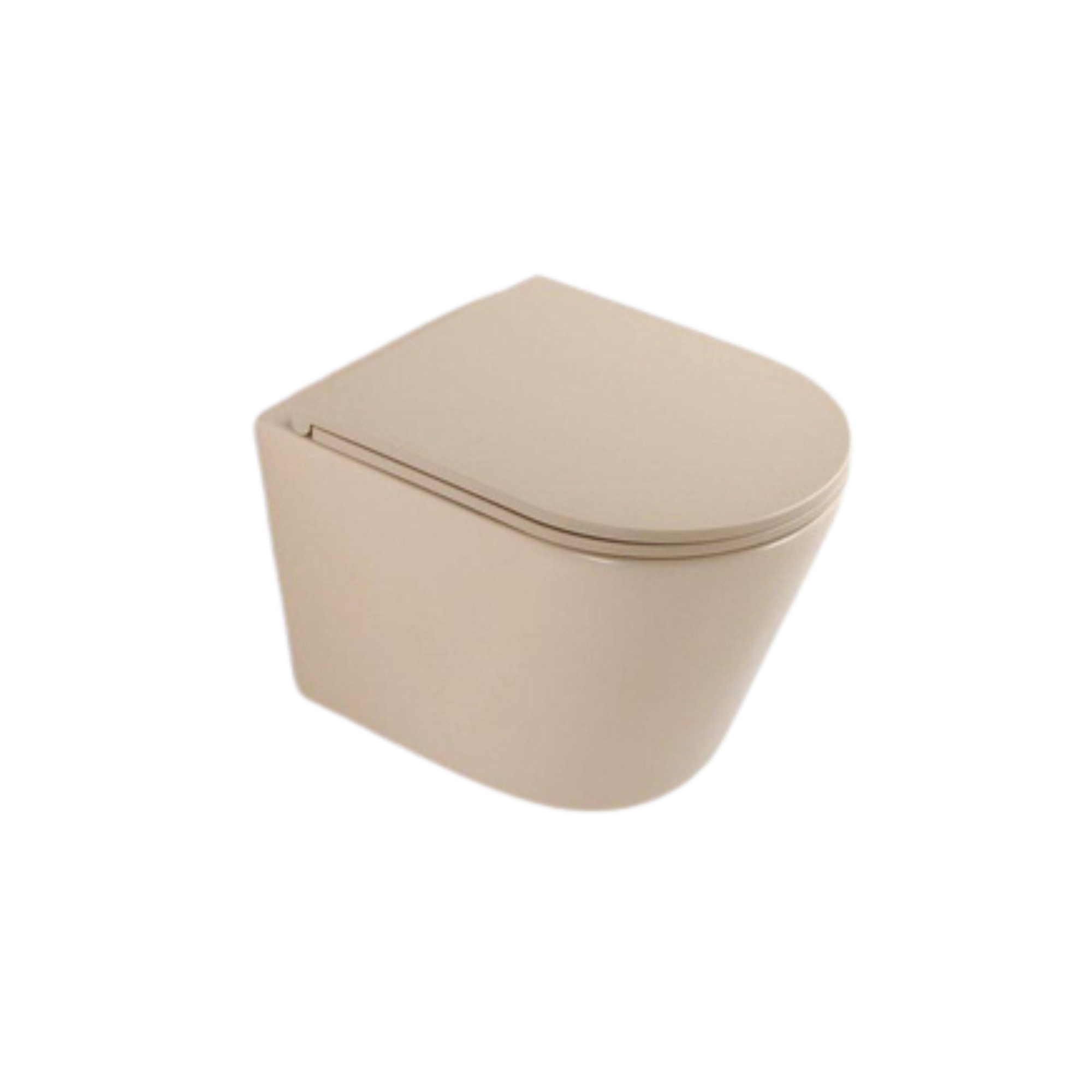 QeramiQ Dely Toiletset - 36.3x51.7cm - diepspoel - rimless - Geberit UP320 inbouwreservoir - softclose toilet zitting - bedieningsplaat licht grijs - ronde knoppen - mat beige
