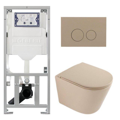QeramiQ Dely Toiletset - 36.3x51.7cm - diepspoel - rimless - Geberit UP320 inbouwreservoir - softclose toilet zitting - bedieningsplaat taupe - ronde knoppen - mat beige