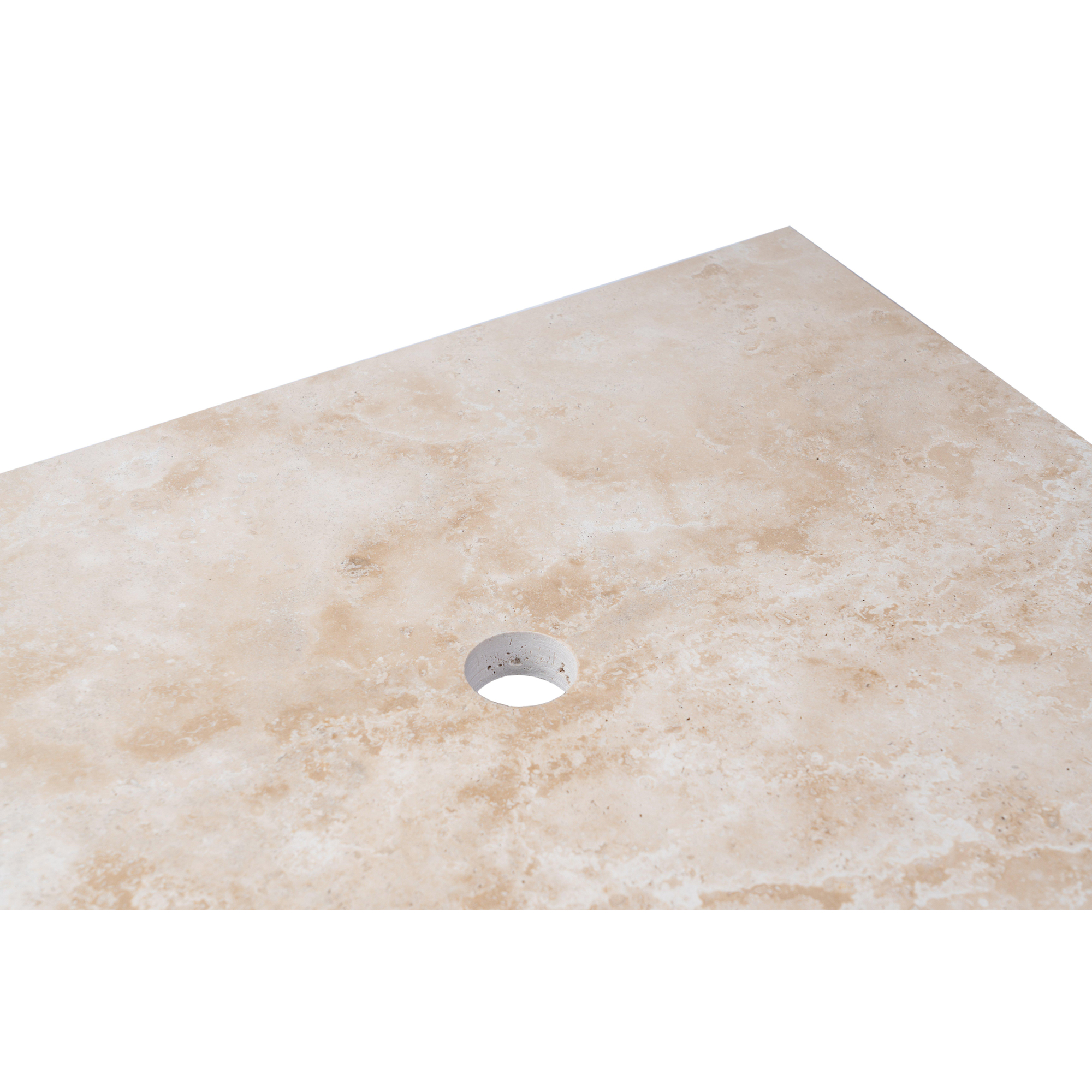Saniclass Travertine Topblad - 60x46cm - 1 kraangat - 1 sifon-uitsparing - gemeleerd natuursteen
