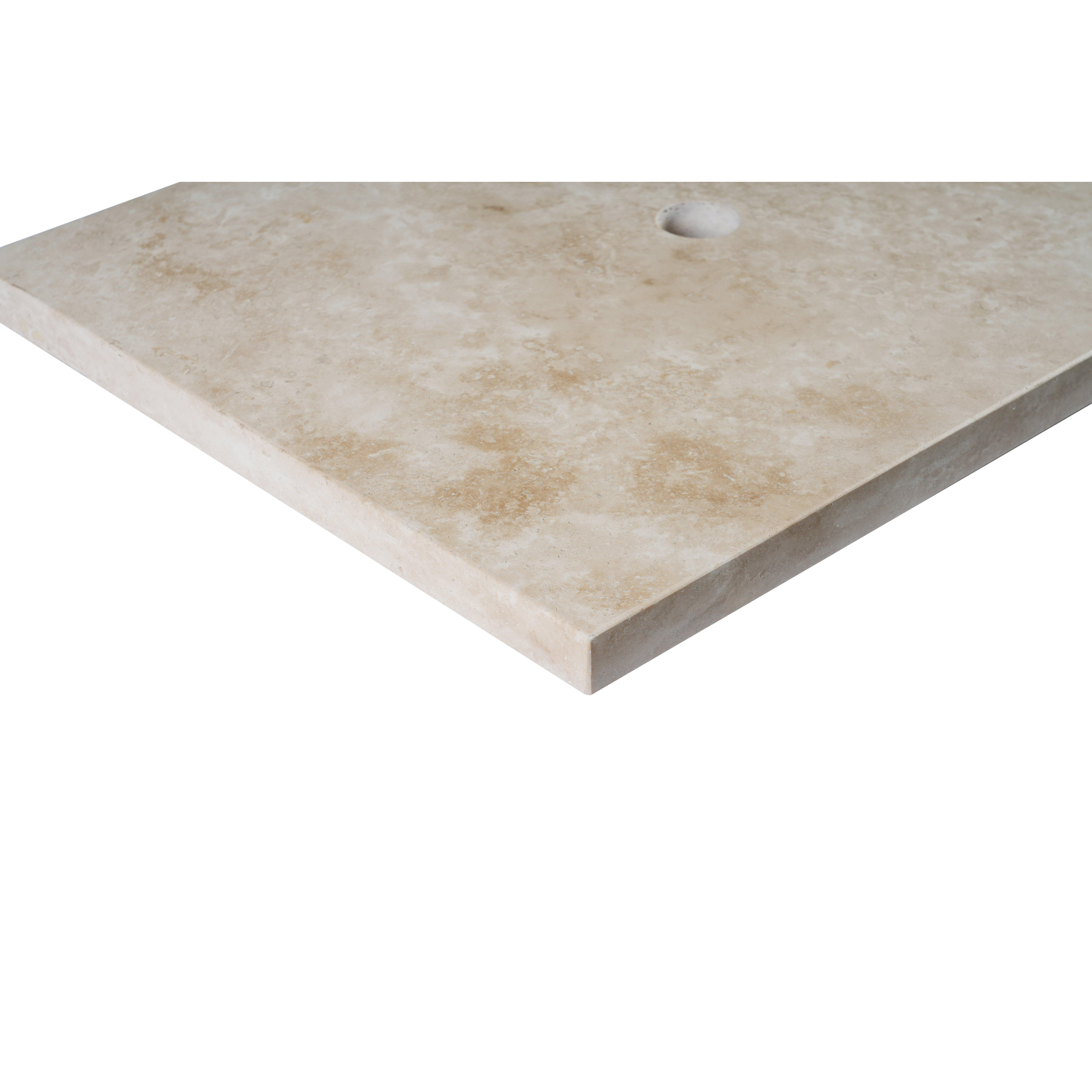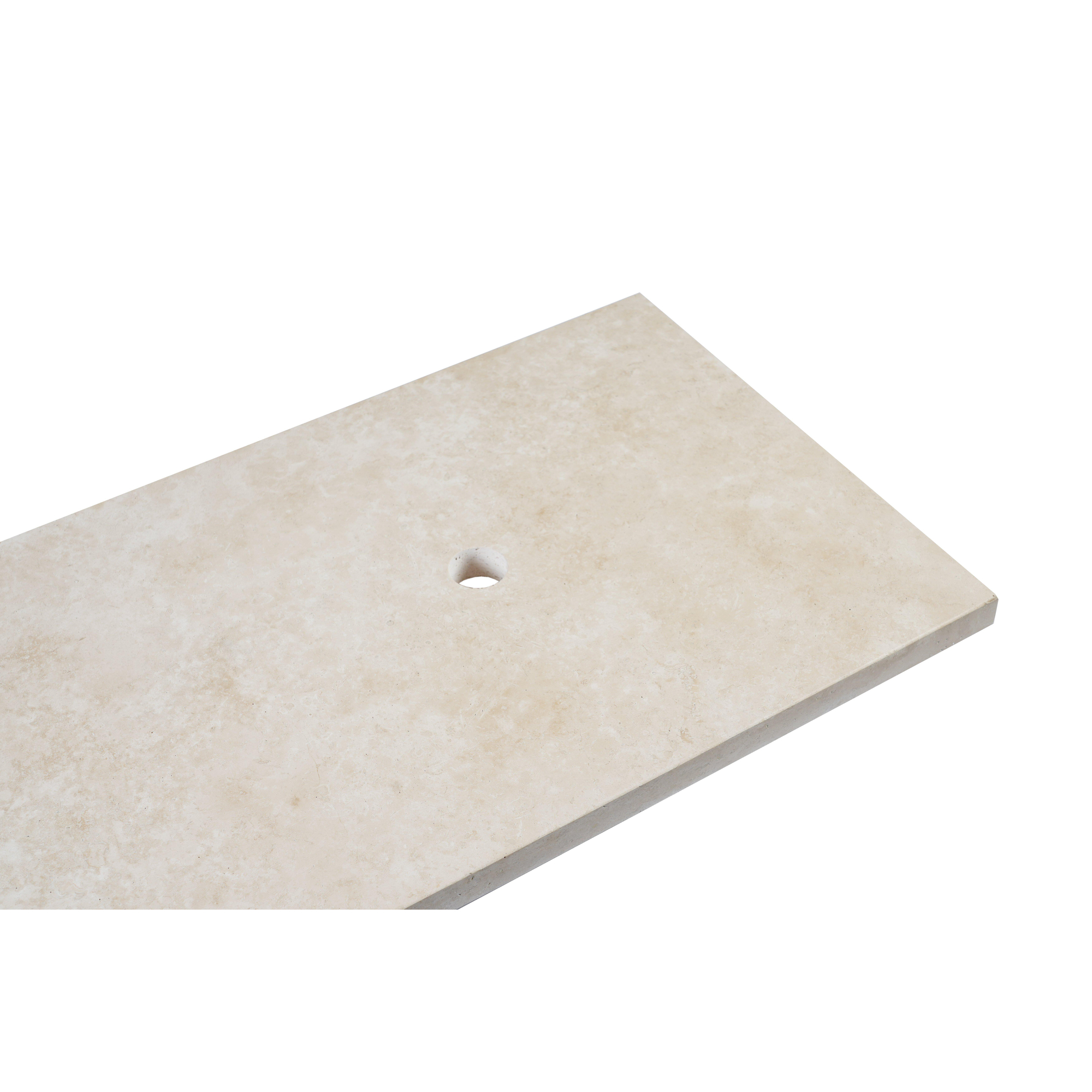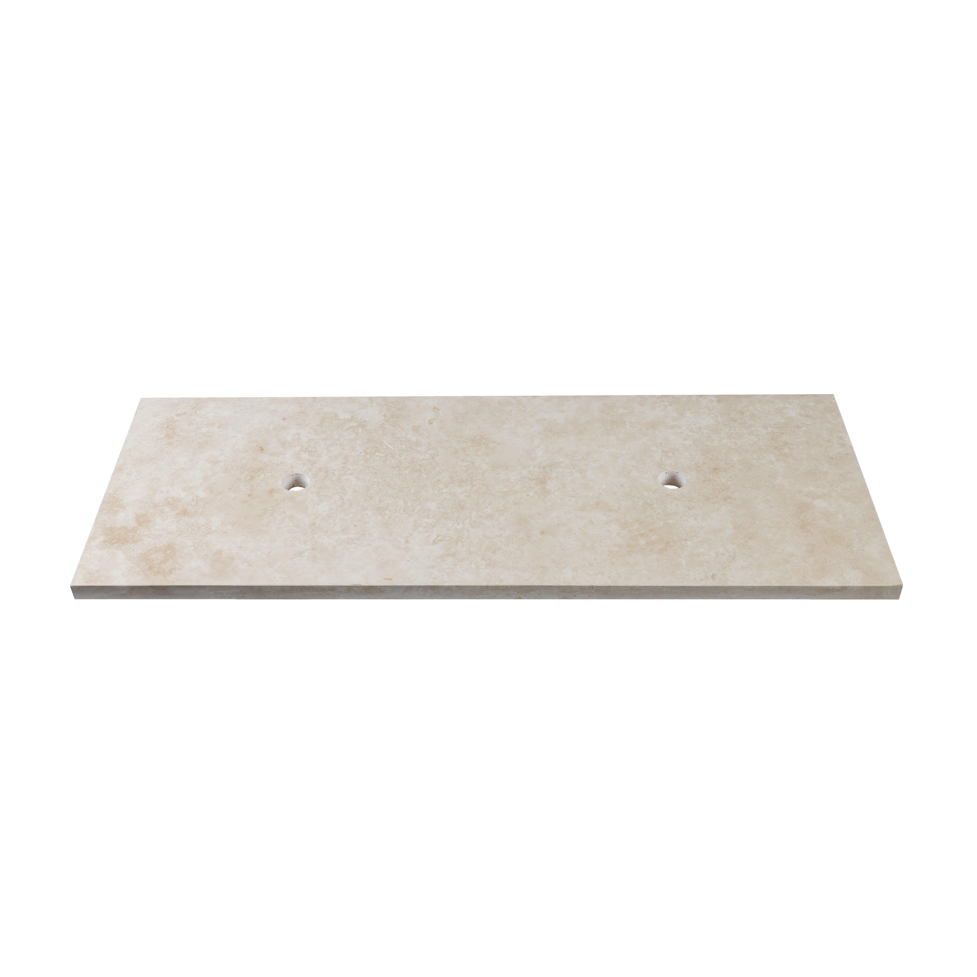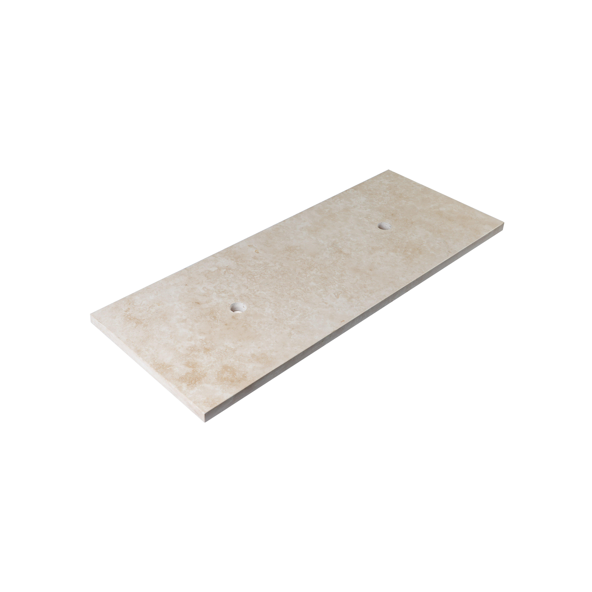 Saniclass Travertine Topblad - 120x46cm - zonder kraangaten - 2 sifon-uitsparingen - gemeleerd natuursteen