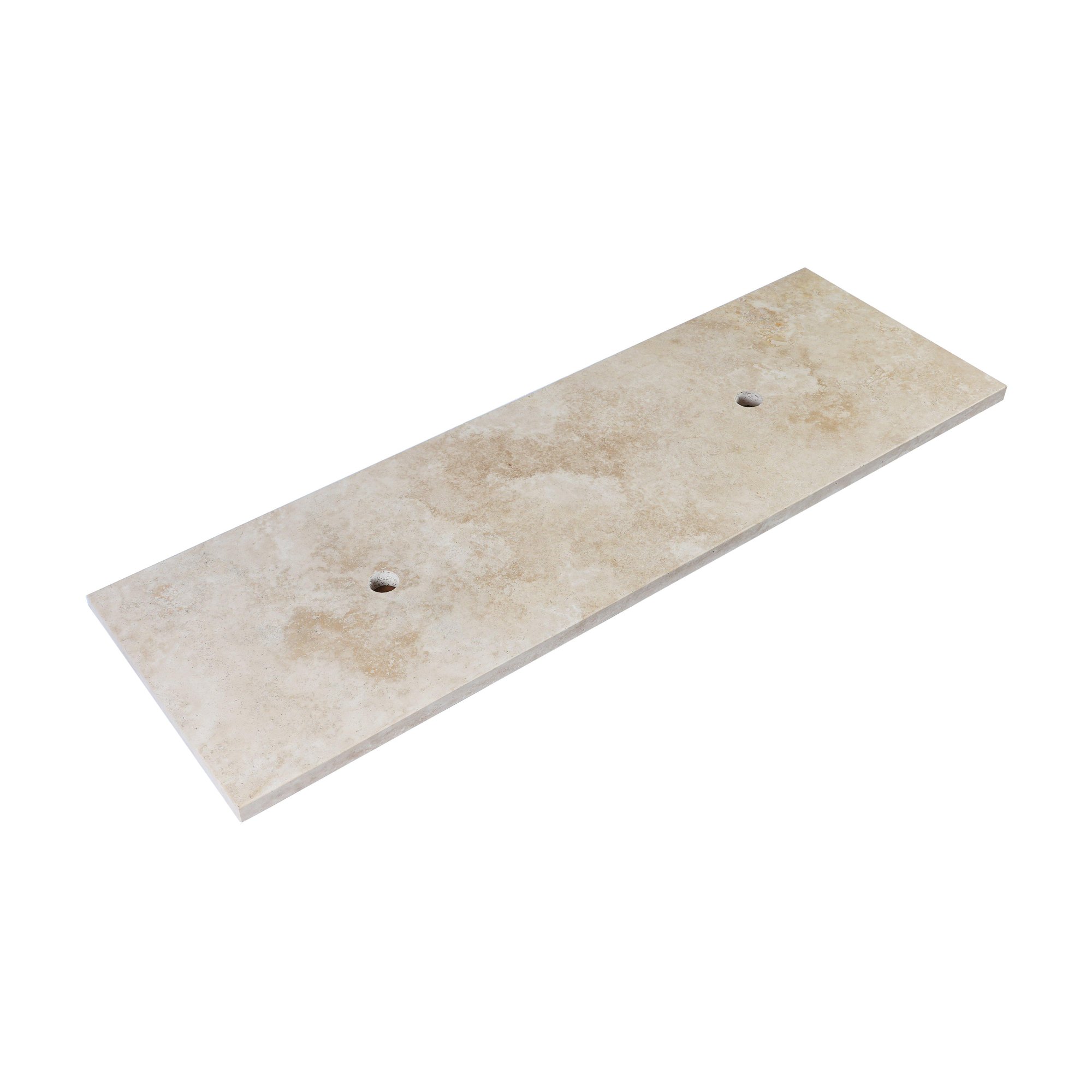 Saniclass Travertine Topblad - 140x46cm - zonder kraangaten - 2 sifon-uitsparingen - gemeleerd natuursteen