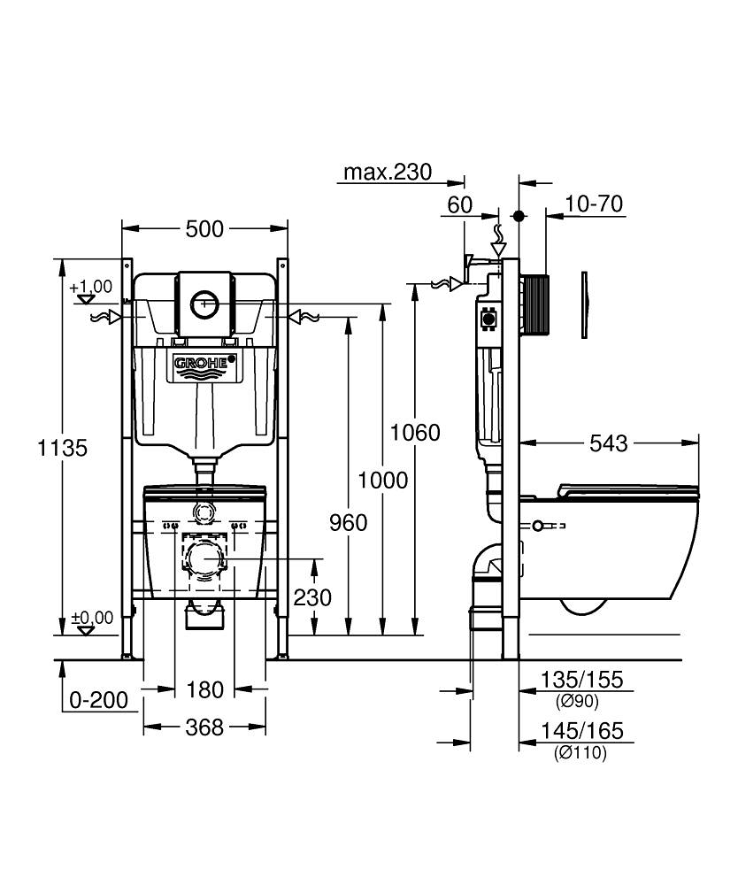 Het inbouwreservoir is voorzien van GROHE EcoJoy® voor waterbesparing, en de SpareFlush-functie voorkomt verstoppingen, zelfs bij oudere leidingen. Dankzij GROHE ToolFree en EasyConnect is de installatie eenvoudig en snel, zonder speciaal gereedschap. De duurzame Long-Life Finish maakt schoonmaken extra makkelijk en houdt alles langdurig mooi.