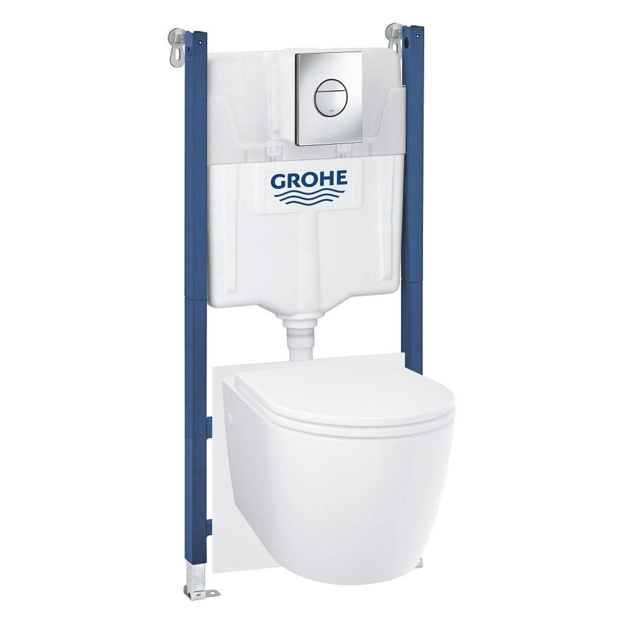 Grohe Solido Start Round toiletset diepspoel - rimless - Grohe Solido inbouwreservoir - softclose toiletzitting - bedieningsplaat chroom