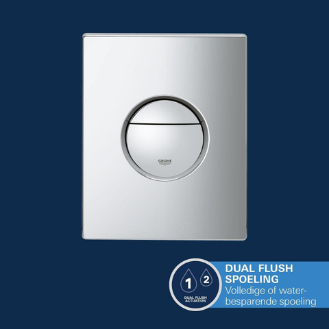 De dubbele spoelfunctie met 3 of 6 liter helpt je om tot 50% water te besparen. De bedieningsplaat is afgewerkt met de duurzame GROHE Long-Life chroomlaag. De Rapid SL constructie is stevig getest tot 400 kg draagvermogen en kan zowel op massieve muren als op lichte wanden worden geplaatst. Met het ToolFree systeem sluit je watertoevoer, slang en revisieschacht aan zonder gereedschap.