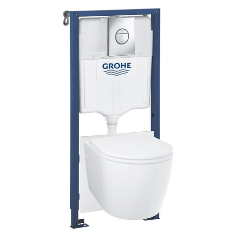 Met de Grohe Solido Start Round toiletset (5-in-1) haal je alles in huis voor een stijlvolle en praktische toiletopstelling. Deze set bevat een randloos Start Round wandtoilet in alpine wit keramiek, een softclose zitting met deksel, een chromen Sail bedieningsplaat, wandbevestigingsset en geluiddempingsset. Dankzij het verborgen inbouwreservoir oogt je badkamer strak en ruimtelijk, terwijl je geniet van optimale hygiëne en comfort.