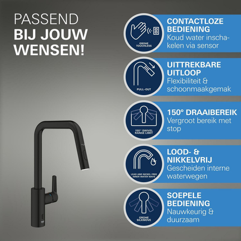 Grohe Start Keukenmengkraan - hoge uitloop - infrarood - mat zwart