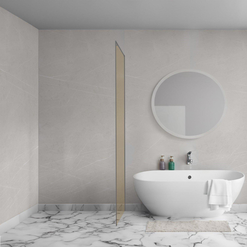 Met zijn glanzende champagne glas en gunmetal details straalt de Aqua Vista Oria Cuadra zijwand een tijdloze elegantie uit. Elk element is zorgvuldig ontworpen om een gevoel van verfijning en klasse toe te voegen aan jouw badkamer. Laat je betoveren door de harmonie tussen vorm en functie.
